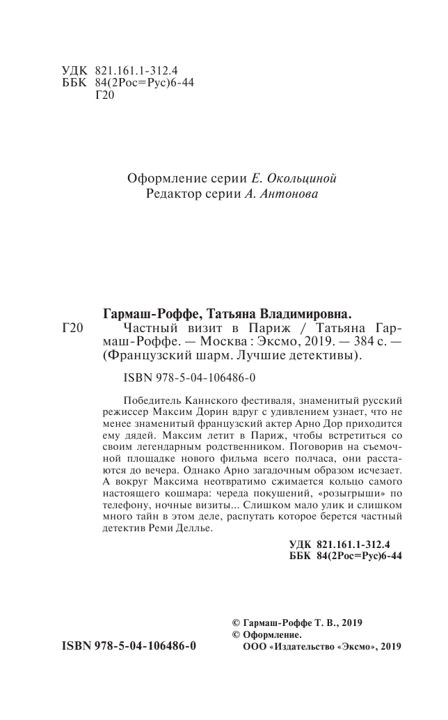 Книга: Частный визит в Париж (Гармаш-Роффе Татьяна Владимировна); ООО "Издательство "Эксмо", 2019