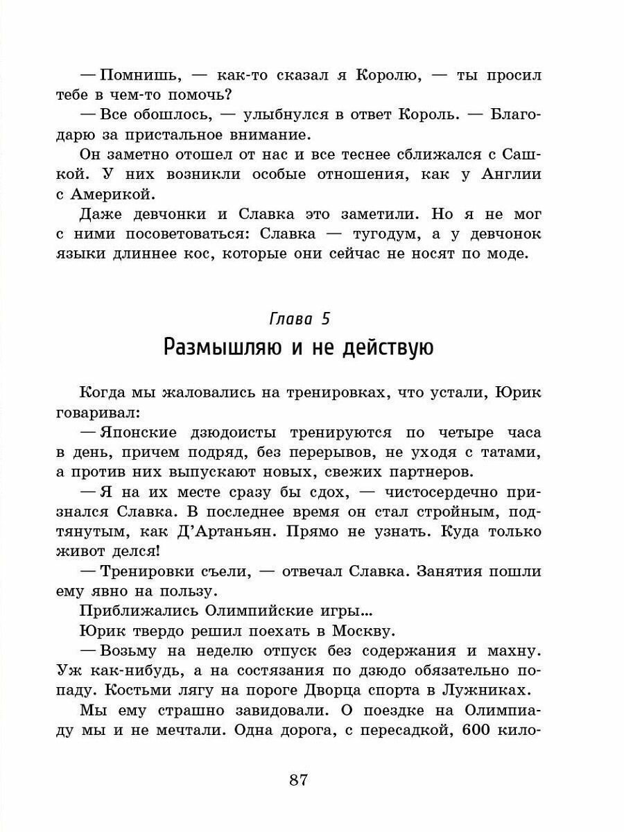 Приобретала книгу для дочери. Очень долго искали произведение, которое могло бы понравиться. Остановились на этом. Как сказала моя дочь: "Когда долго ищещь, это обязательно приведёт к правильному выбору". Книгу она прочитала, она ей очень понравилась. Вот ее рецензия: "Мы знакомимся с героями разных характеров. Один из мальчишек ведёт рассказ о своей жизни в городке от первого лица. Живет он спокойно, сейчас каникулы, лето. У него есть своя "летняя резиденция" и несколько друзей. Герой в тайне вздыхает по самой красивой девочке их класса. И не терпит своего недруга. Но, с появлением некого "Короля" в их тихом городе жизнь резко меняется. Впереди много приключений. И позже встанет вопрос у читателя: "Кто здесь истинный король"? И " Как легко чувствовать себя большим возле маленьких. А среди больших"?