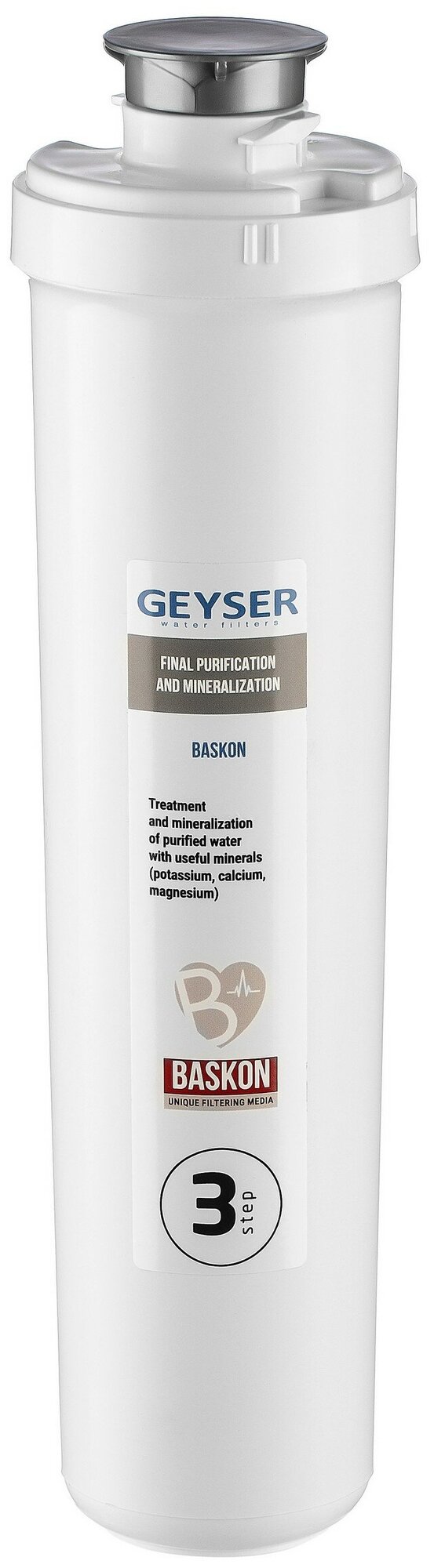 Картридж Баскон для фильтра Гейзер Престиж Смарт - это финишная очистка и минерализация воды. Чистая и полезная вода, со сбалансированным минеральным составом.Уникальная технология Баскон обеспечивает насыщение воды полезными элементами: калием, магнием и кальцием.
