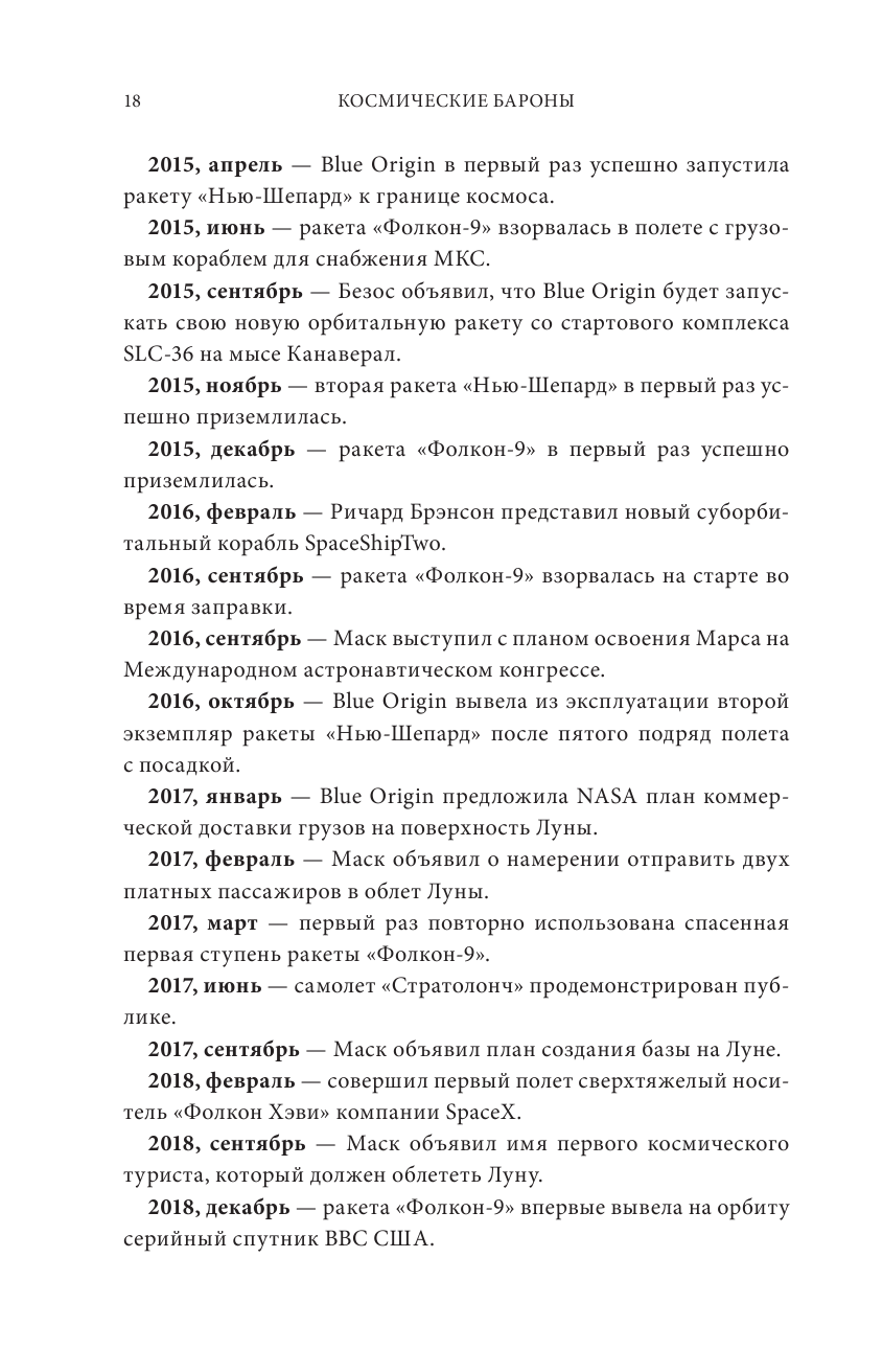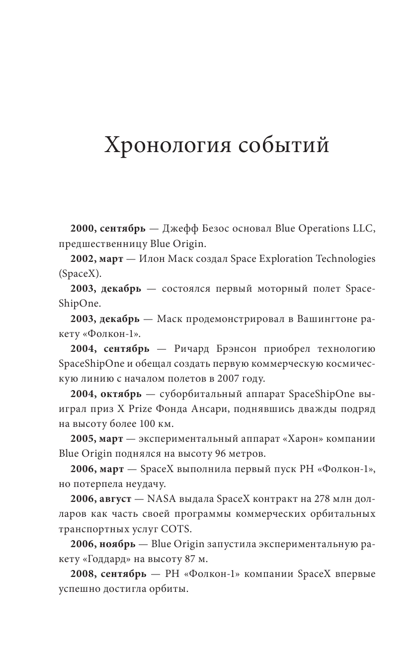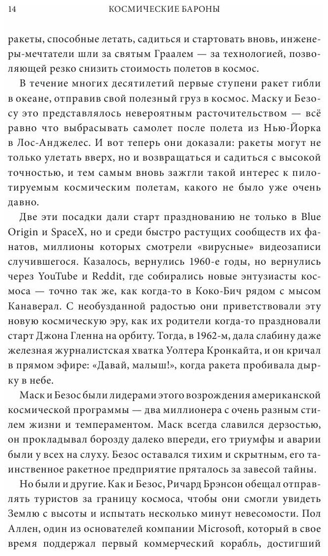 Это еще и классическая история соперничества стартапов с грандиозными замыслами, история личных столкновений лидеров этого нового космического движения, в особенности Маска и Безоса, на пути к Луне, Марсу и , в глубины космоса.