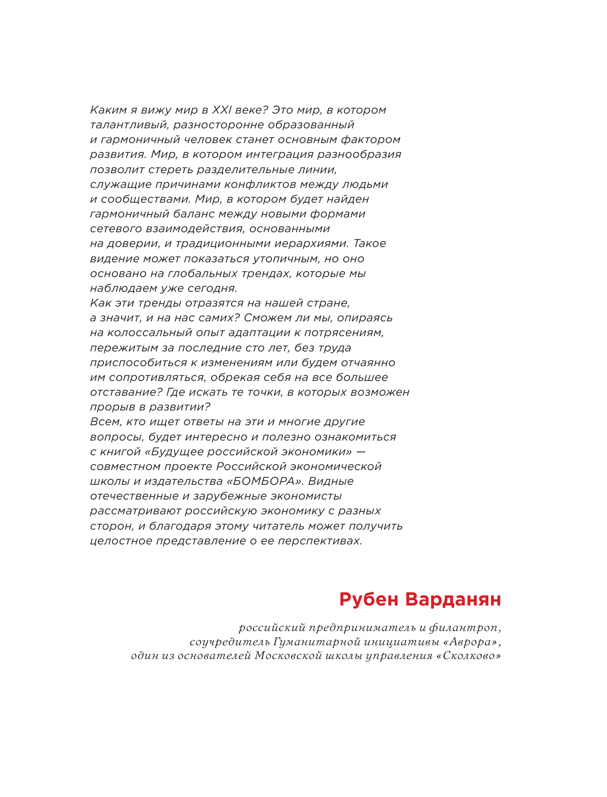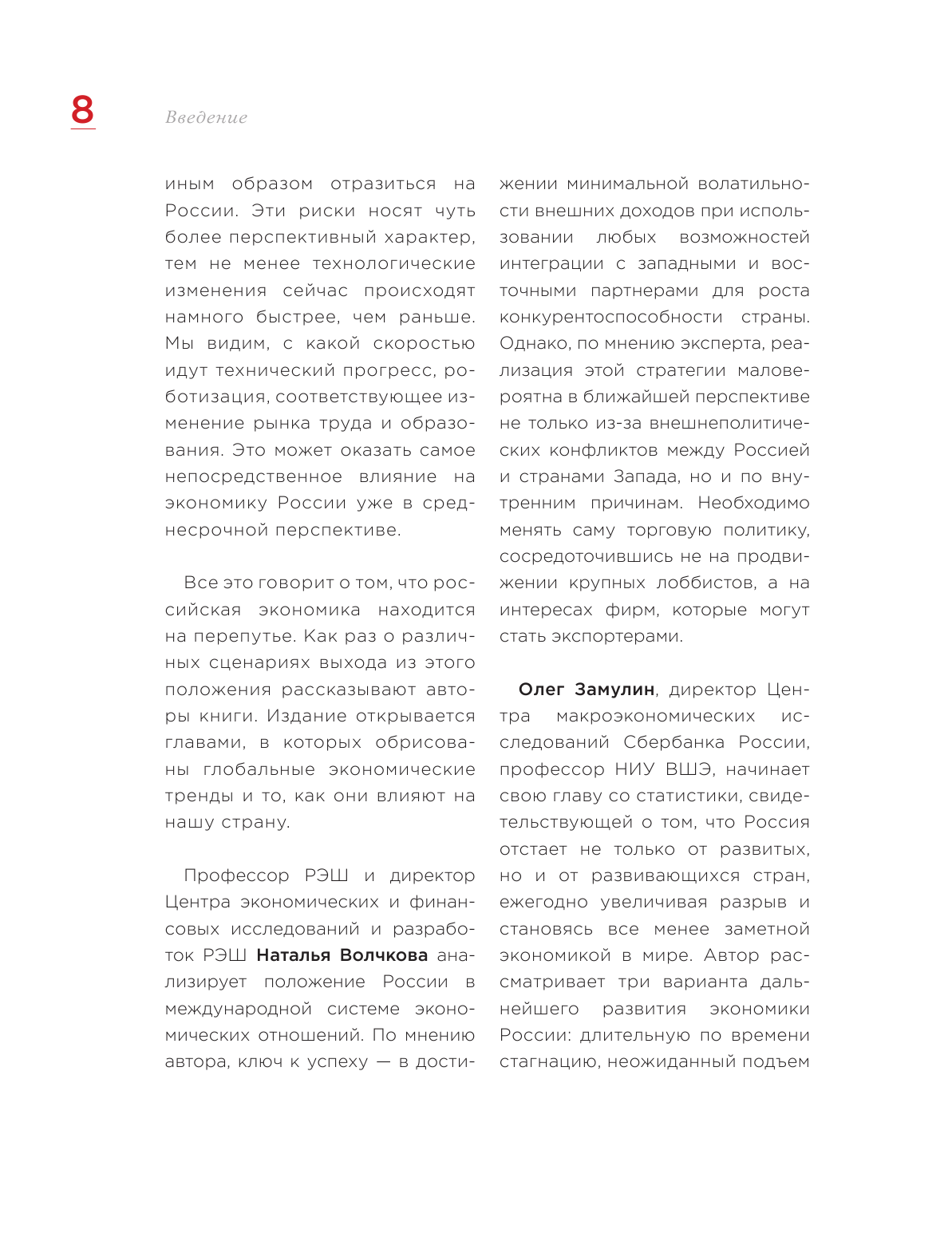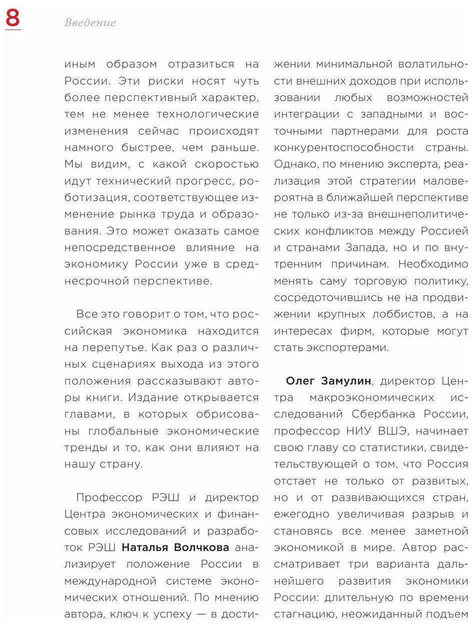 Экономисты - профессора Российской экономической школы и другие ведущие российские и зарубежные эксперты - делятся своим видением дальнейшего развития России, основываясь на анализе глобальных тенденций и знании современных реалий. Позиции каждого из авторов подкреплены статистикой и научными данными, что обеспечивает честный и непредвзятый взгляд на будущее страны.