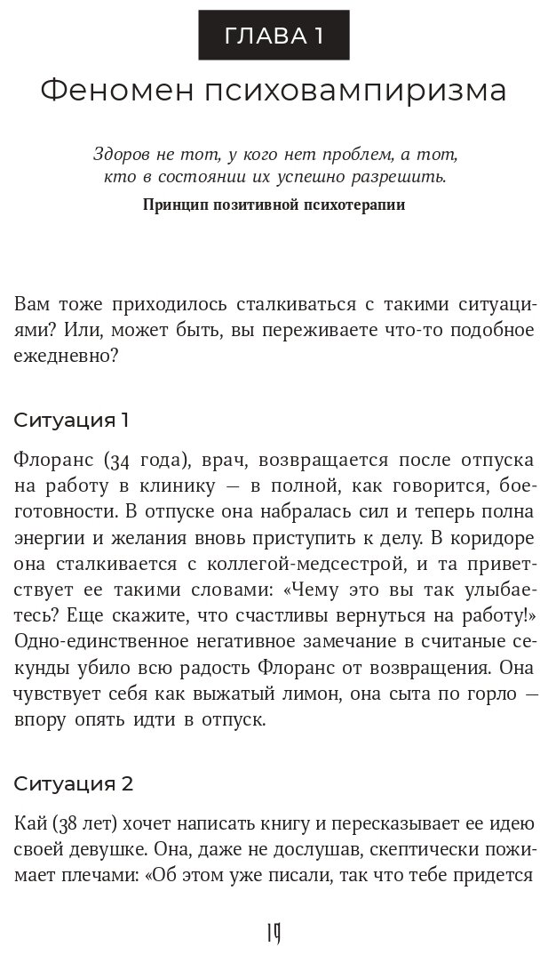 Начинала читать данную книгу с большим вообушевлением, но потом "огонь" угас, потому что под те описания двенадцати типов вампиров, которых выделил автор, подходят всё люди. И стало понятно, что дело не в тех людях, которые крадут энергию, а больше в тех, кто её отдаёт, так как это те "жертвы", у которых есть некие проблемы, и недоработанные области в жизни. От этого и появляется уязвимость.