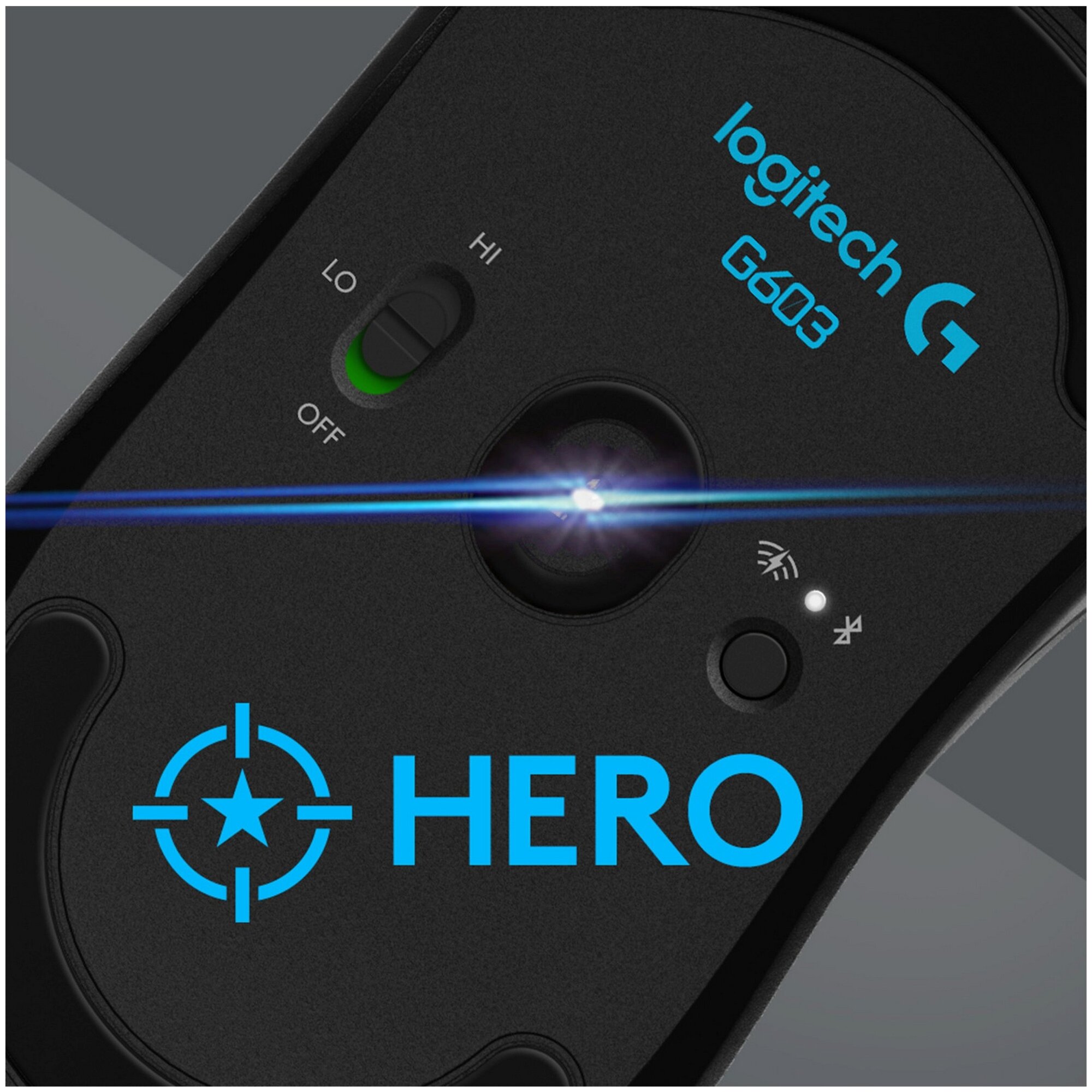 Игровая мышь Logitech G603 снабжена инновационным сенсором HERO. Он позволяет регулировать чувствительность в пределах 200–12 000 dpi, сохраняя при этом нулевой уровень сглаживания и округления позиции. За счёт этого пользователь может наводить курсор на цель с точностью до пикселя, получая преимущество над противниками в динамичных шутерах, где важная каждая доля секунды.