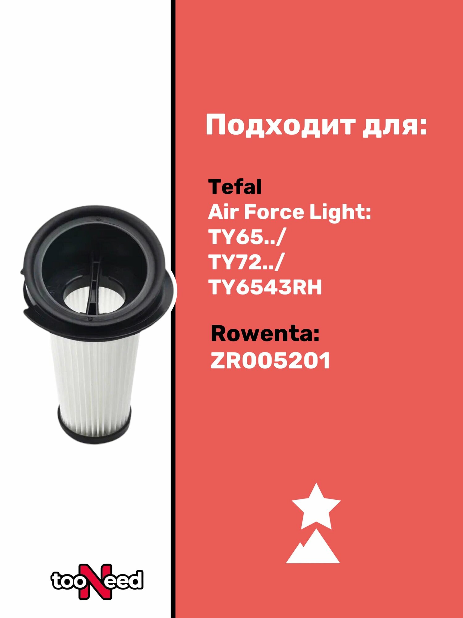 | Прочие особенности и свойства | Моющийся выходной фильтр для вертикальных пылесосов Tefal Air Force Light. |
