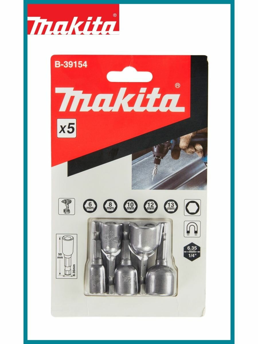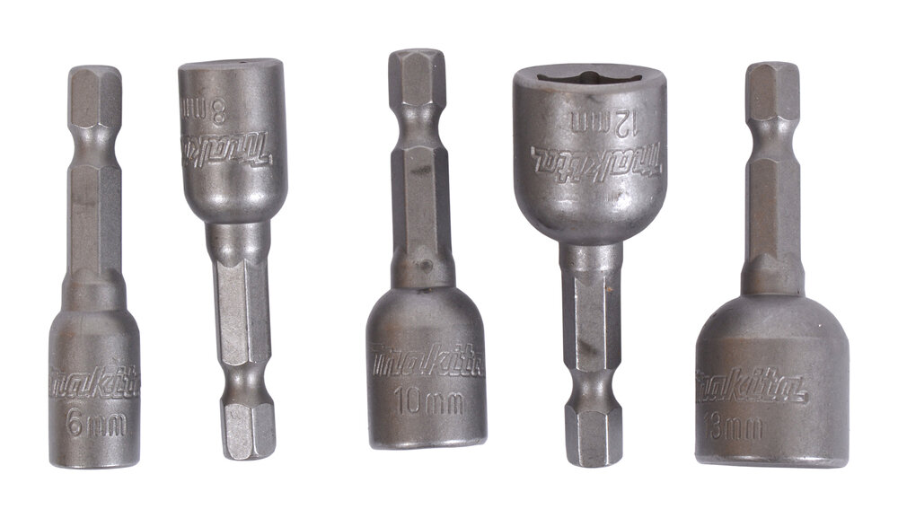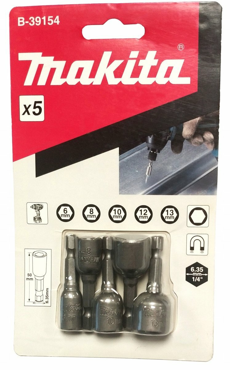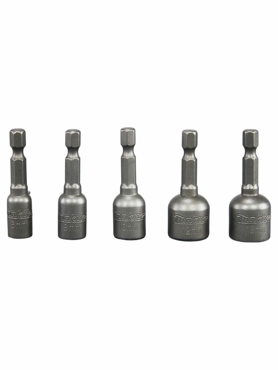 Набор головок торцовых магнитных из 5шт. (5,8,10,12,13)*50мм MAKITA Набор магнитных торцевых головок Makita для выполнения монтажных и демонтажных работ. Изготовлены из высококачественной стали, что уменьшает износ и опасность надлома головок.