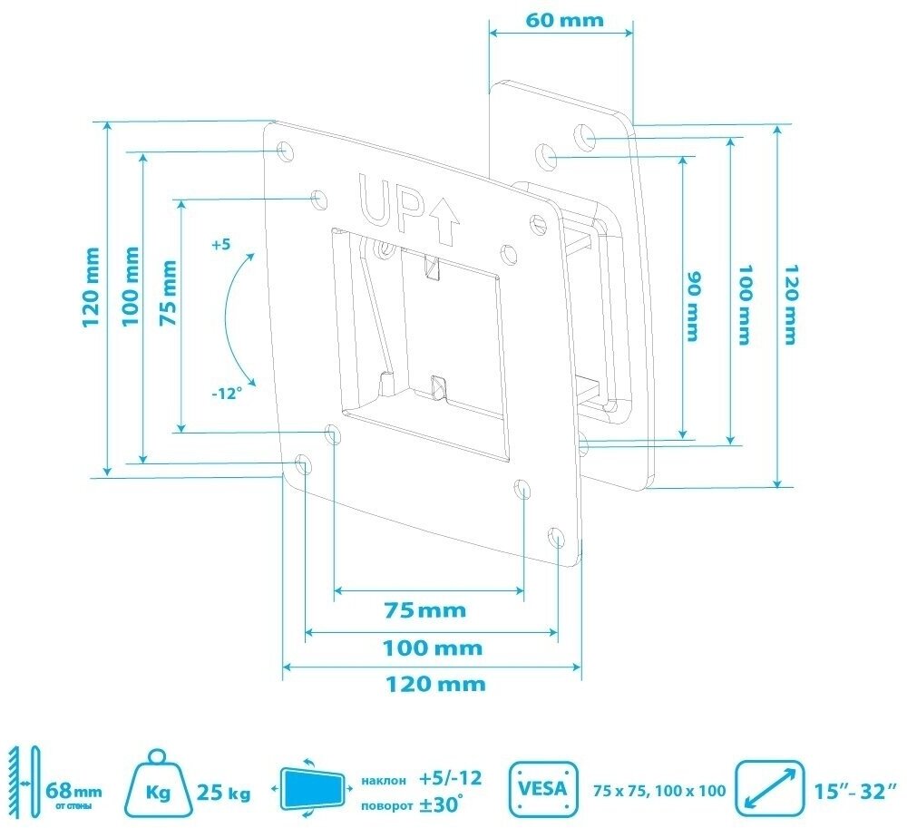 | Дополнительно | Надежная стальная конструкция, Легкий монтаж телевизора, Универсальная система крепления |