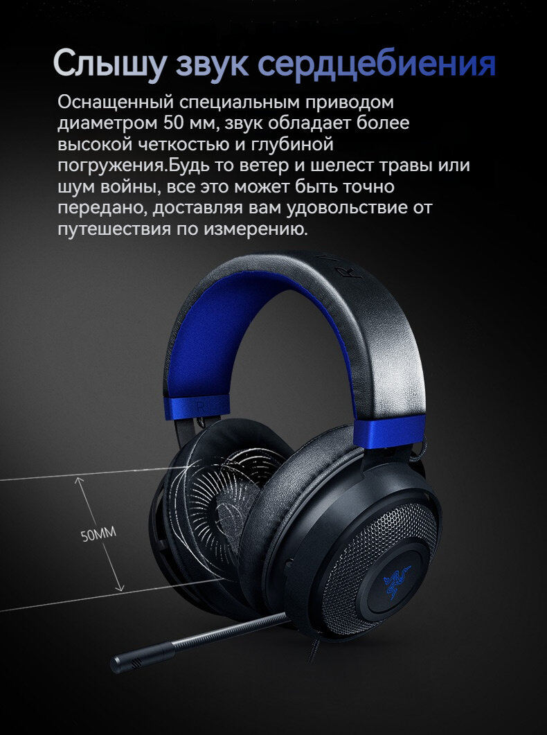 Наушники Razer обладают регулирующимся оголовьем, которое обеспечит плотное и удобное прилегание к голове.