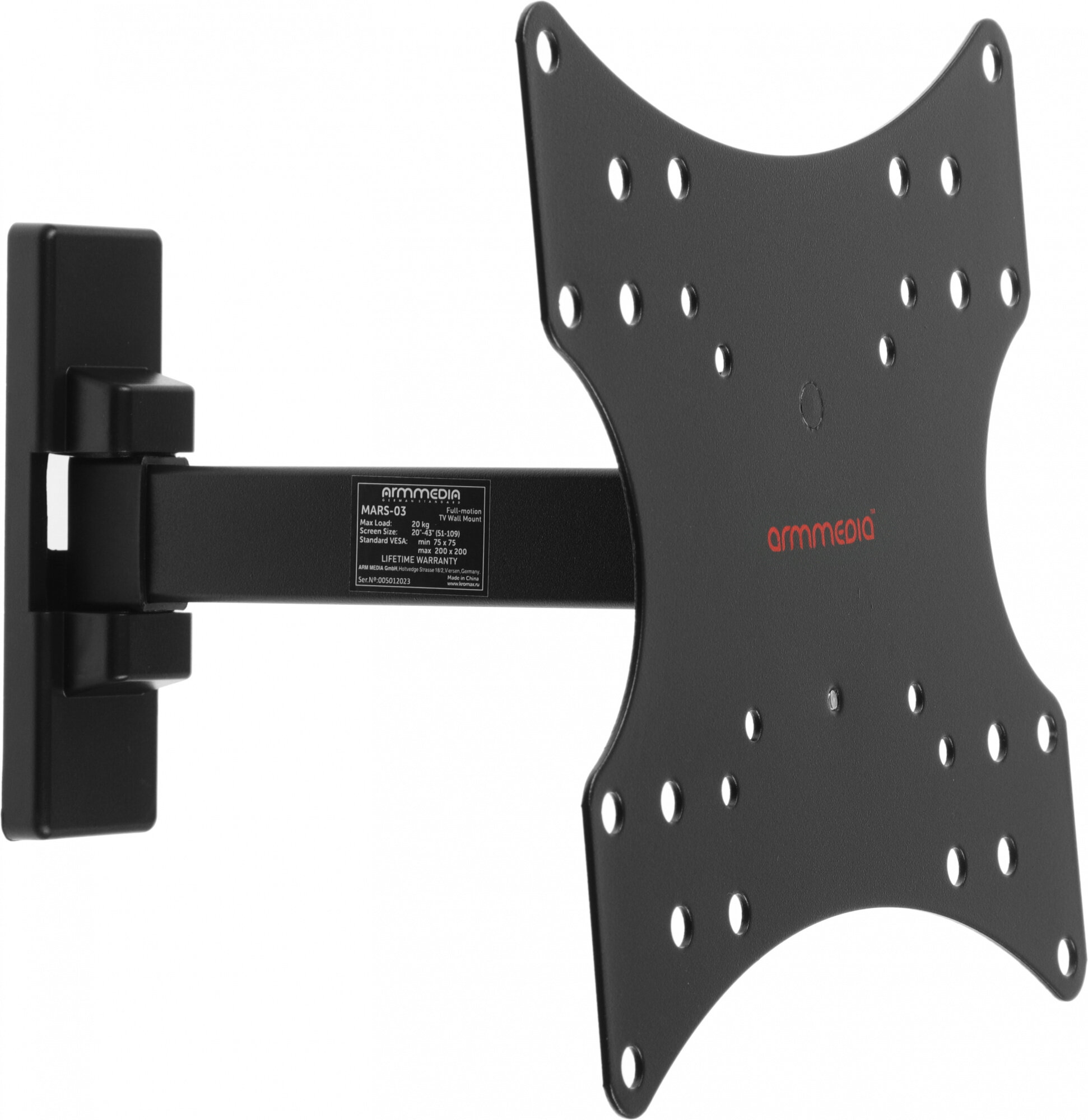 ARM MEDIA станет великолепным выбором для техники размером 20-43 дюймов. Благодаря надежной конструкции модель выдержит нагрузку до 20 кг.
