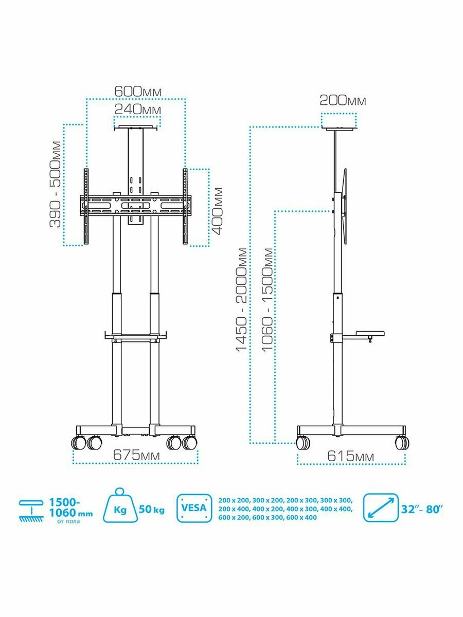 Надёжная и безопасная мобильная стойка ARM MEDIA гарантированно закрепит и удержит устройства с диагональю от 32"-80" и весом до 50 килограммов. Простая и интуитивно понятная конструкция мобильной стойки ARM MEDIA идеально подойдет для самостоятельного монтажа, частного и профессионального использования.Мощная конструкция мобильной стойки и широкий профиль позволяют надёжно удерживать дорогостоящее оборудование. Изделие подходит для большинства экранов популярных брендов, среди которых Samsung, LG, Sony, Panasonic, Sharp, Toshiba, KIVI, Xiaomi Mi, SUPRA, Hyundai, Erisson, Tcl, Asano, Horizont, JVC, Thomson, HARTENS, Skyworth, HAIER, BBK, AVEL, Витязь, Веко, BQ, DEXP, OZON, SkyLine, Pioneer, Philips, Rolsen, Harper, Hisense, Hitachi, Polarline, Prestigio и других.Крепёжные отверстия мобильной стойки ARM MEDIA изготовлены по международному универсальному стандарту VESA. В комплектацию входят необходимые для монтажа материалы. Вся продукция обеспечивается гарантийными обязательствами. 10 лет гарантии на все сварные и механические соединения позволит наслаждаться конструкцией долгий срок. Во время эксплуатации изделие демонстрирует поразительную износостойкость и безотказность, ведь все технико-эксплуатационные характеристики кронштейнов подвергаются скрупулезному контролю непосредственно в процессе производства.