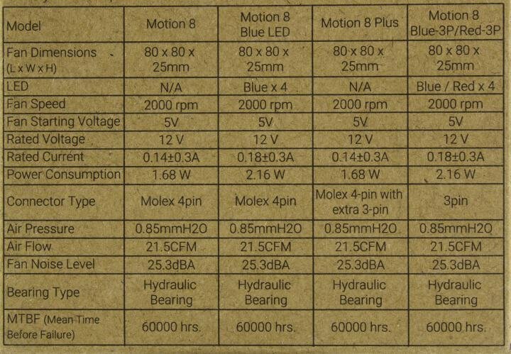 Модель: Motion 8 Red-3P 80x80mm 3-pin 25dB 90gr LED Ret