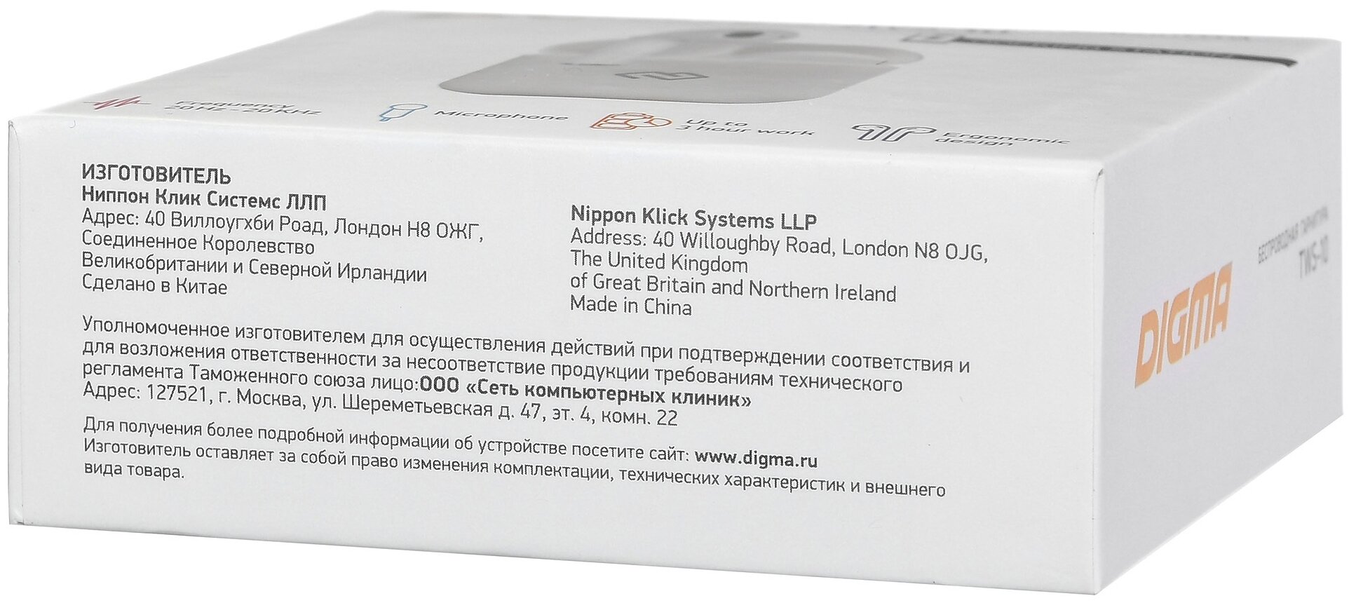 Емкий аккумулятор обеспечит 3-часовую работу Digma без дополнительной зарядки.