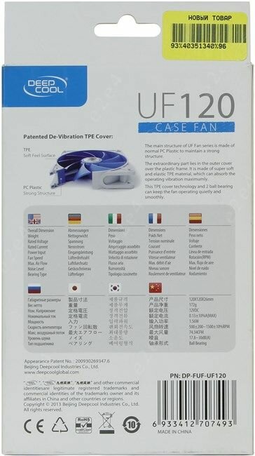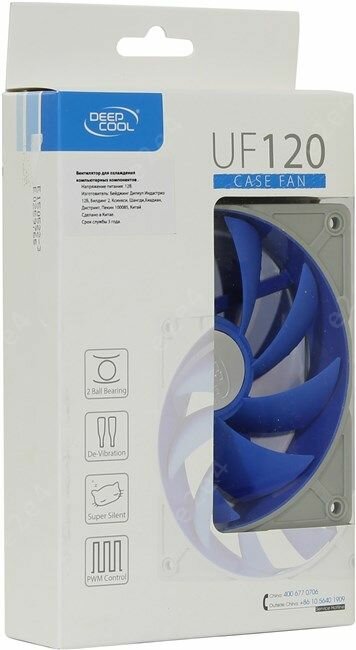Вентилятор Deepcool UF120 120x120мм, диаметр вентилятора 120мм, уровень шума до 30dB, вес 172гр., Ret (UF 120)