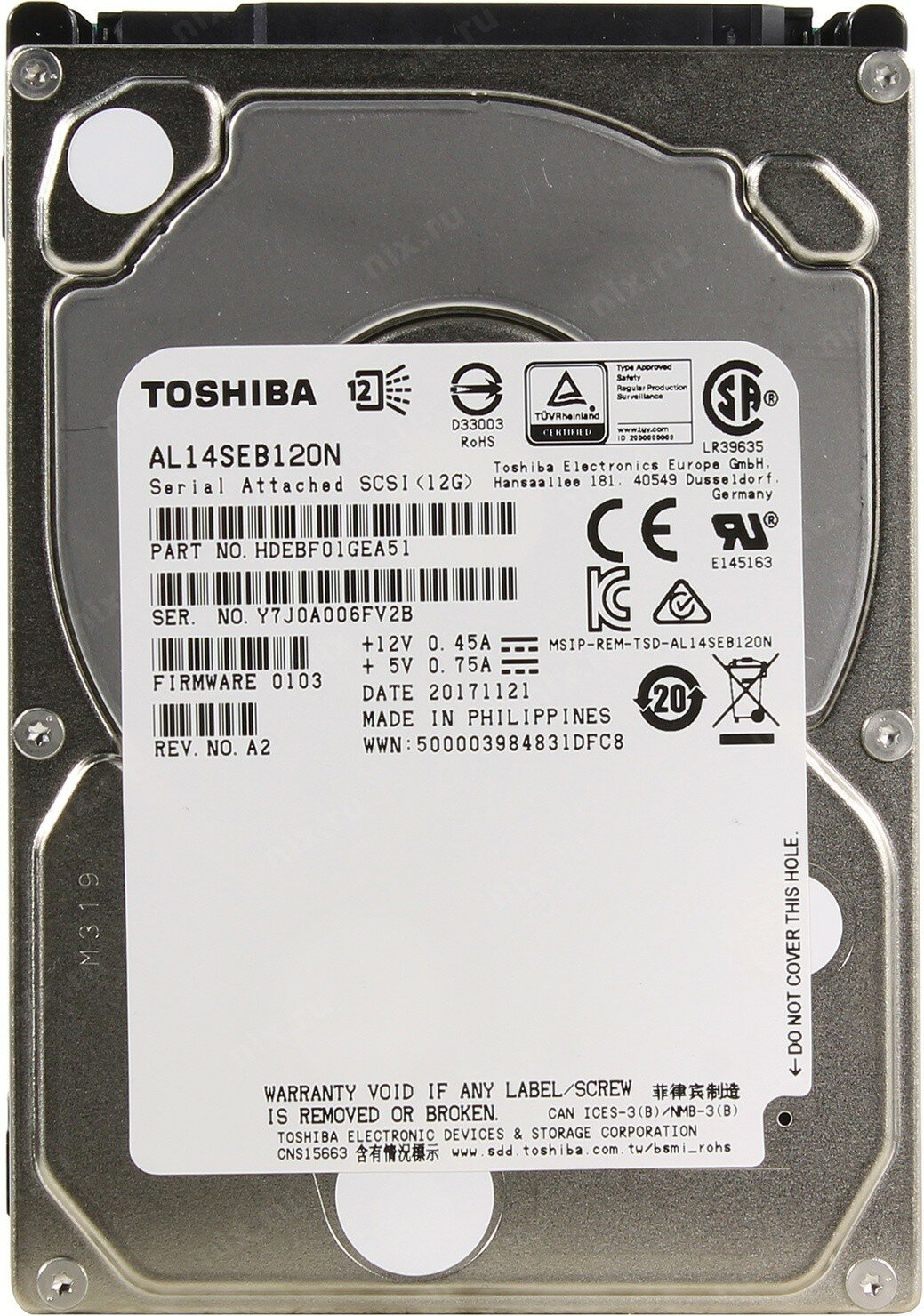 Модель: SAS 3.0 1200Gb AL14SEB120N (10500rpm) 128Mb 2.5"