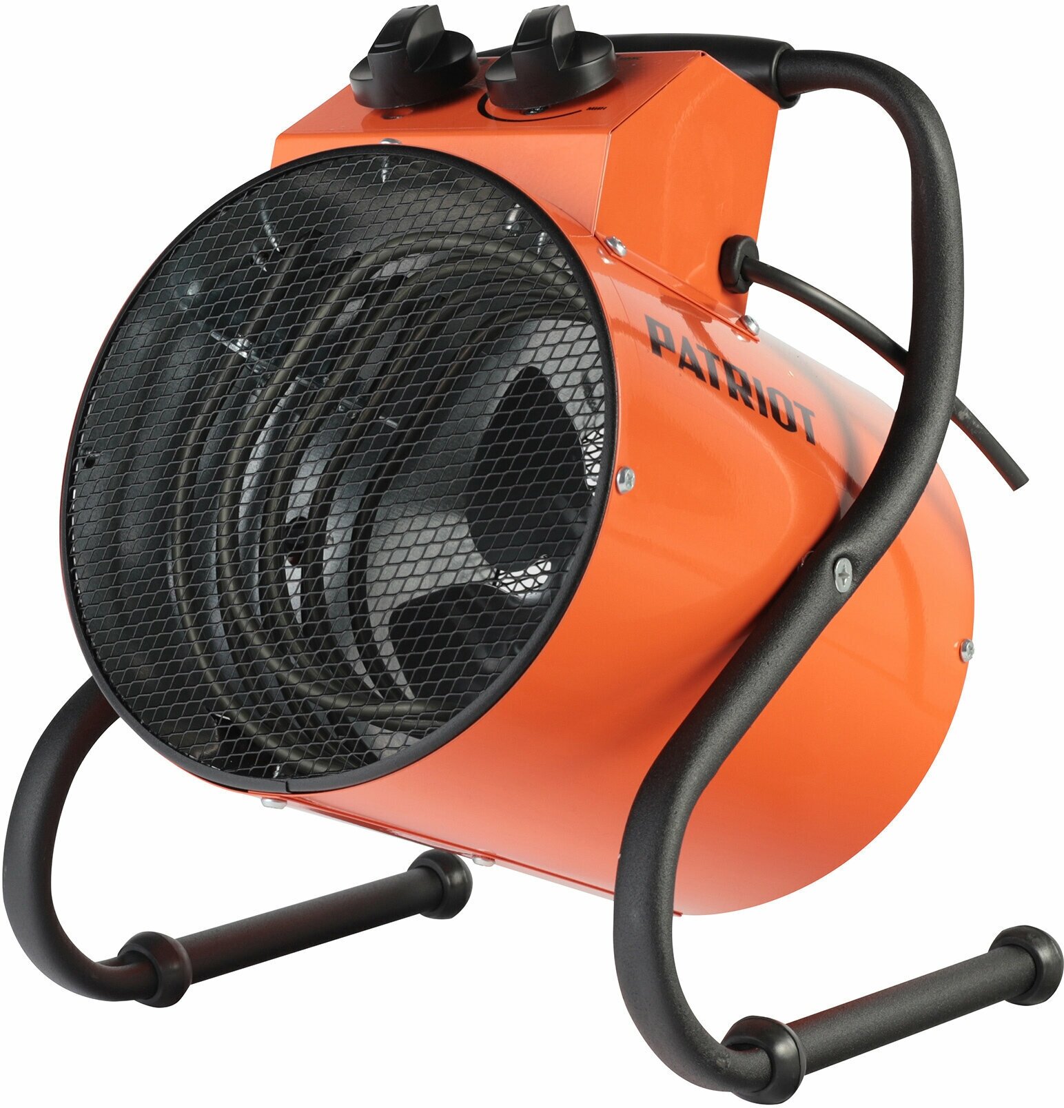 Тепловая пушка Patriot имеет прочный двойной цилиндрический корпус, который не нагревается во время эксплуатации. В комплектацию входит полутораметровый электрический кабель с евровилкой.