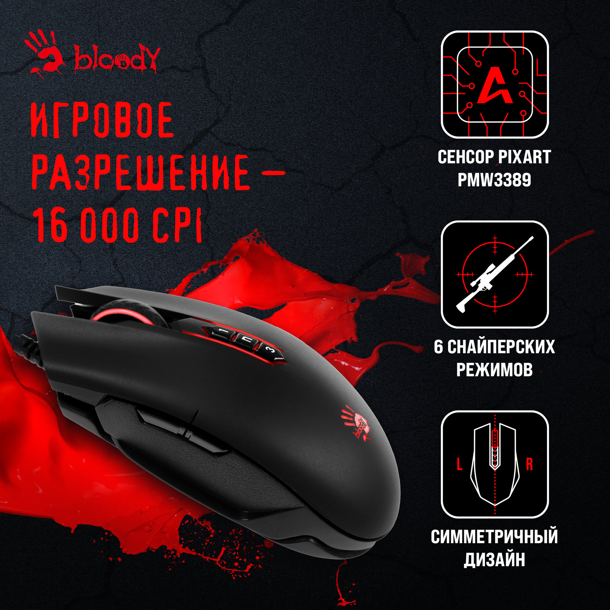 | Разрешение оптического сенсора, dpi | 16000 |