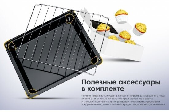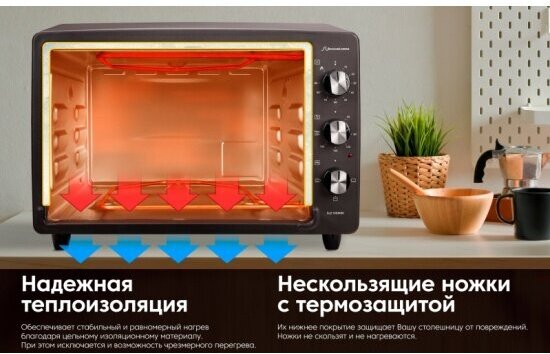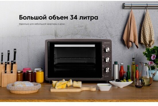 Благодаря внутреннему объему мини-печи в 34 литра вы приготовите сразу большую порцию выпечки. Максимальная температура нагрева составляет 240 °C: готовьте все, что угодно.