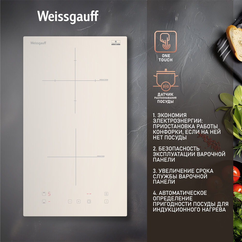 Встраиваемая электрическая панель WEISSGAUFF – сочетание максимальной компактности и технологичности! Индукционная технология нагрева, при которой повышение температуры происходит непосредственно в дне самой посуды, позволит готовить быстрее, расходовать меньше электроэнергии и быть уверенным в том, что "убежавшая" еда не пригорит к поверхности: ведь сама она не раскаляется. Конфорки Cross Zone, отражают современность и технологичность этой модели, стирая ощущение границ при работе с любой конфоркой.