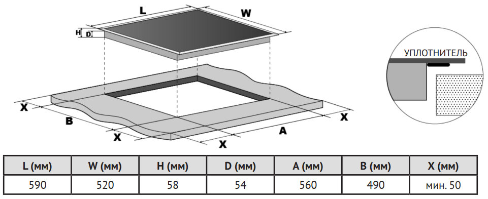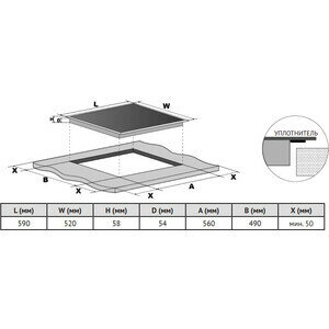 | Размеры для встраивания (ШхГ) | 56 x 49 см |