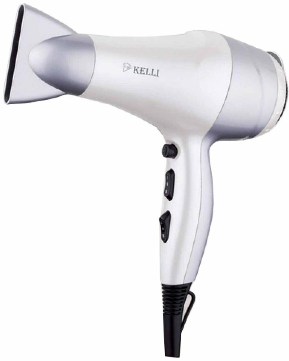 Фен Kelli – станет вашим помощником на долгие годы! Корпус фена полностью выполнен из пластика. В прибор установлен надежный мотор, который обеспечивает длительный срок эксплуатации фена. Насадка-концентратор – классическая и главная насадка для любого фена позволит вам сделать качественную укладку. Для выполнения разных типов задач имеется 6 режимов. Кнопки управления удобно расположены на корпусе прибора. Для удобного хранения фена на корпусе прибора предусмотрена петля для подвешивания.