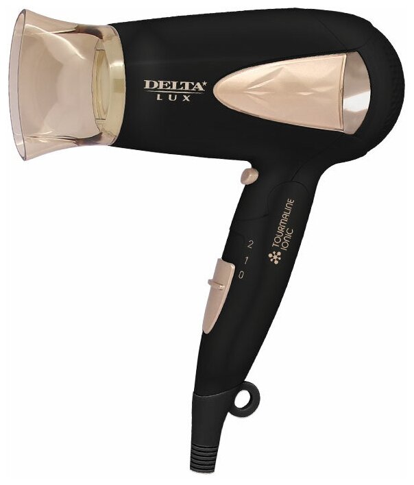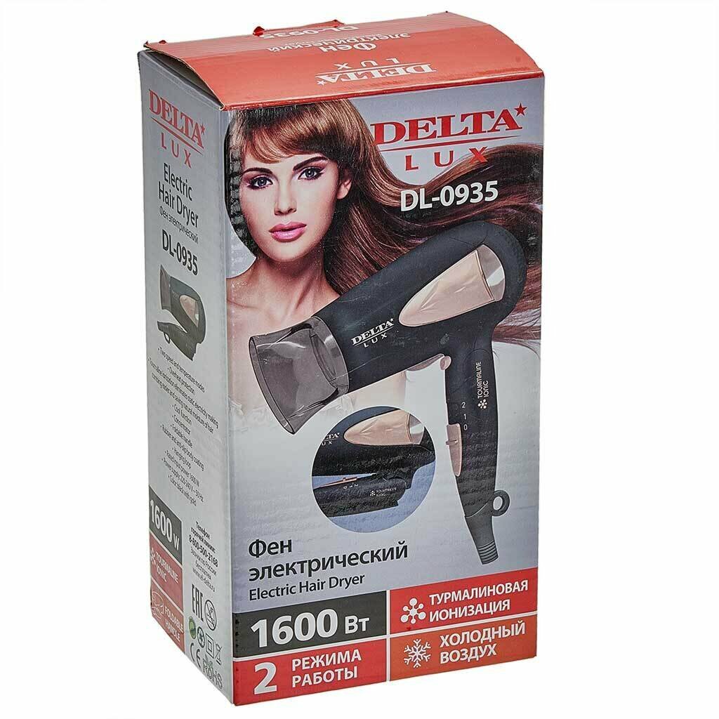 Фен DELTA LUX отличается компактными размерами, а за счет складной ручки его удобно брать с собой в дорогу.