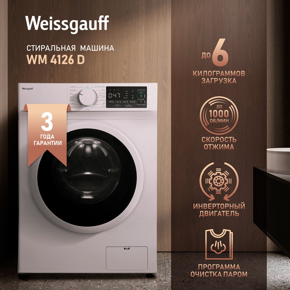 - Фронтальная стиральная машина Weissgauff WM 4126 D -меня поразила своими достоинствами! Тихая в работе, много температурных режимов! Есть режим: моя программа-супер программа! Огромный загрузочный люк