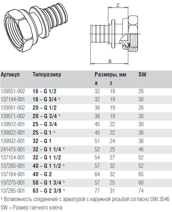 | Область применения фитинга | горячее водоснабжение |