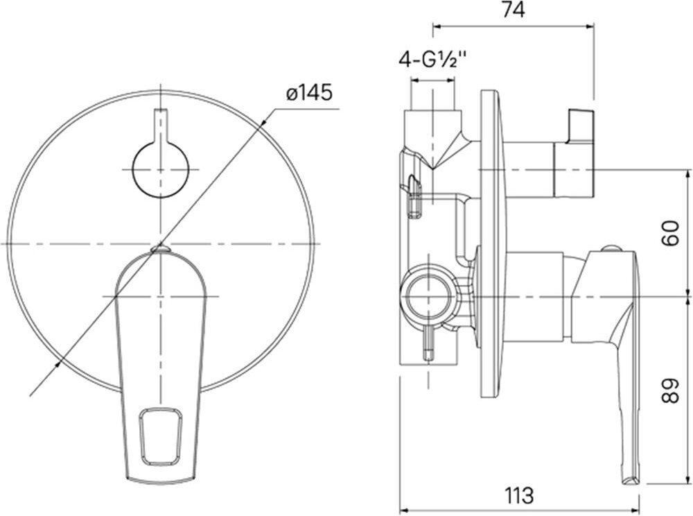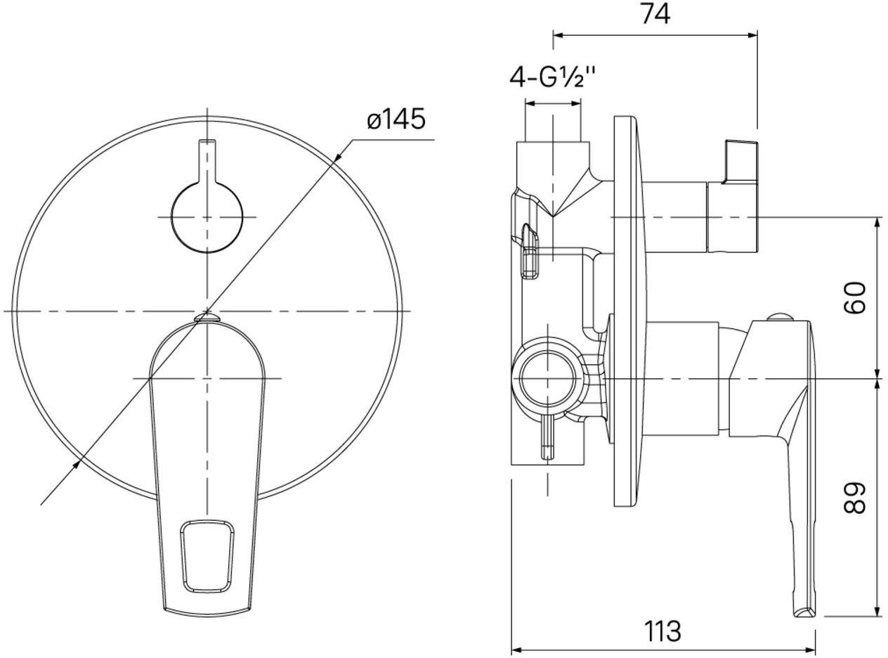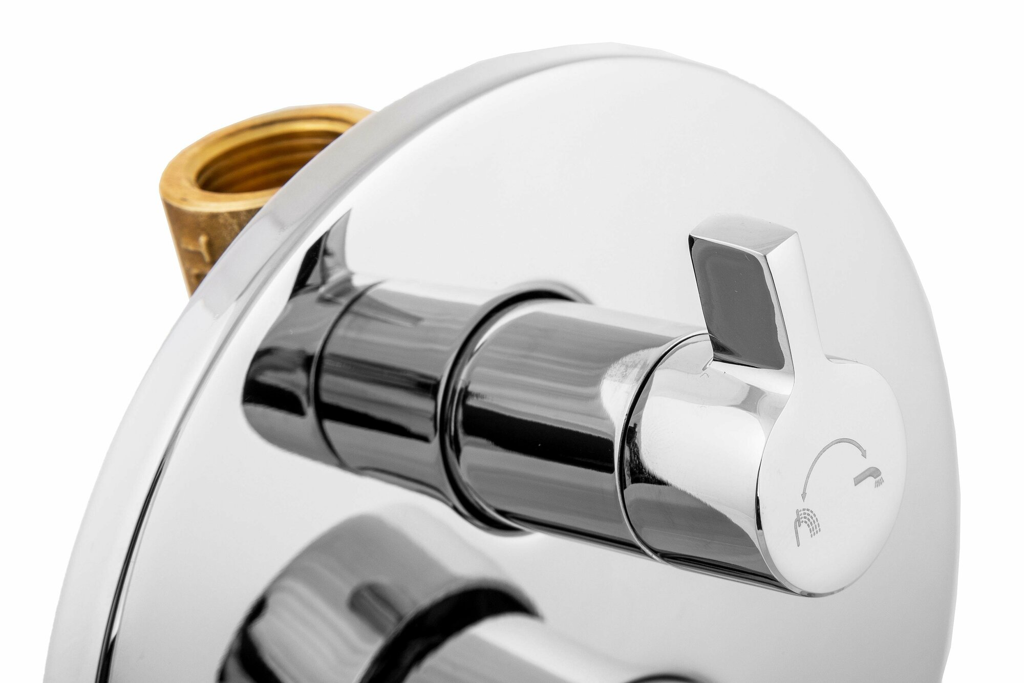 Встраиваемый смеситель с поворотным керамическим дивертором и двумя выходами, однозахватный, латунь, увеличенное никель-хромовое покрытие, керамический картридж Softap. Упаковка: картонная коробка, индивид. мешок.