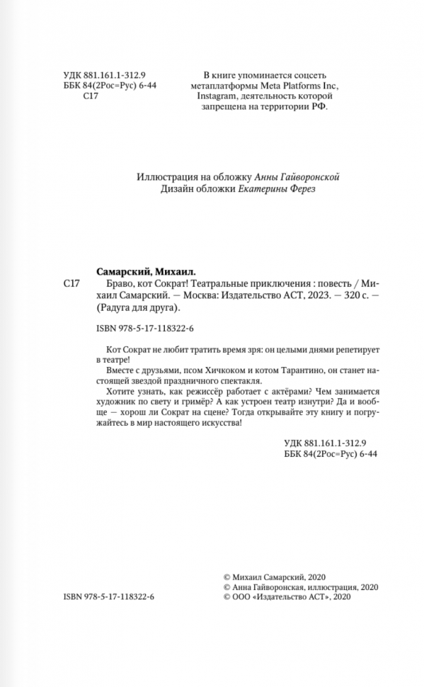 Браво кот Сократ! Театральные приключения (Михаил Самарский); Издательство АСТ, 2020