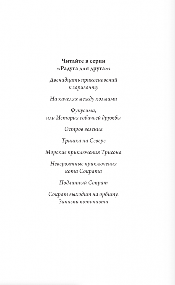 Еще одна замечательная книга Михаила Самарского. Дочка, 10 лет, с большим удовольствием прочитала за два дня. Выполняя домашнее задание на лето ('заполнение читательского дневника), всегда выбирает книги Самарского для создания страниц и написания отзывов, потому что эти книги не могут оставить равнодушными тех, кто любит животных. Прекрасный язык, чувство юмора автора, богатая лексика, которая расширяет словарный запас ребенка - все это делает книги о Сократе бесценными для детей младшего и среднего школьного возраста, да и взрослым будет интересно почитать о приключениях главного героя.