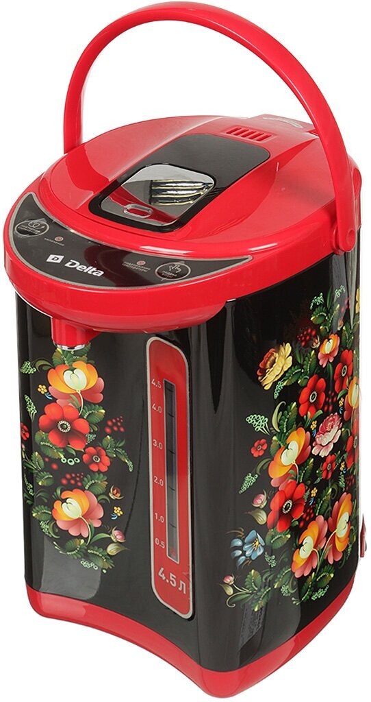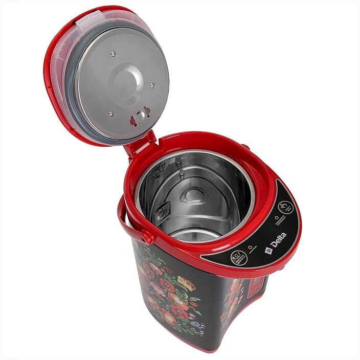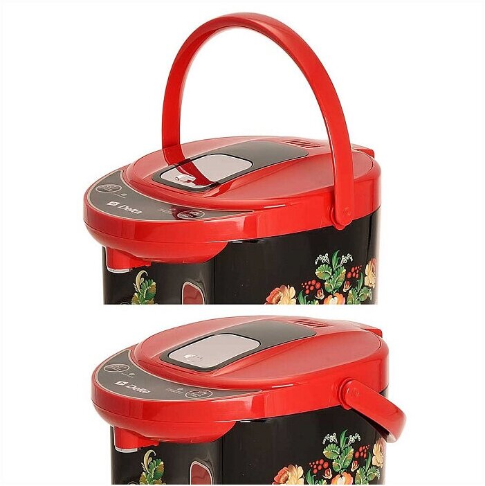 Термопот DELTA - для быстрого и удобного доступа к кипятку! Термопот будет очень долго поддерживать температуру воды. Чтобы налить жидкость в кружку, вам не надо наклонять аппарат - достаточно нажать кнопку.