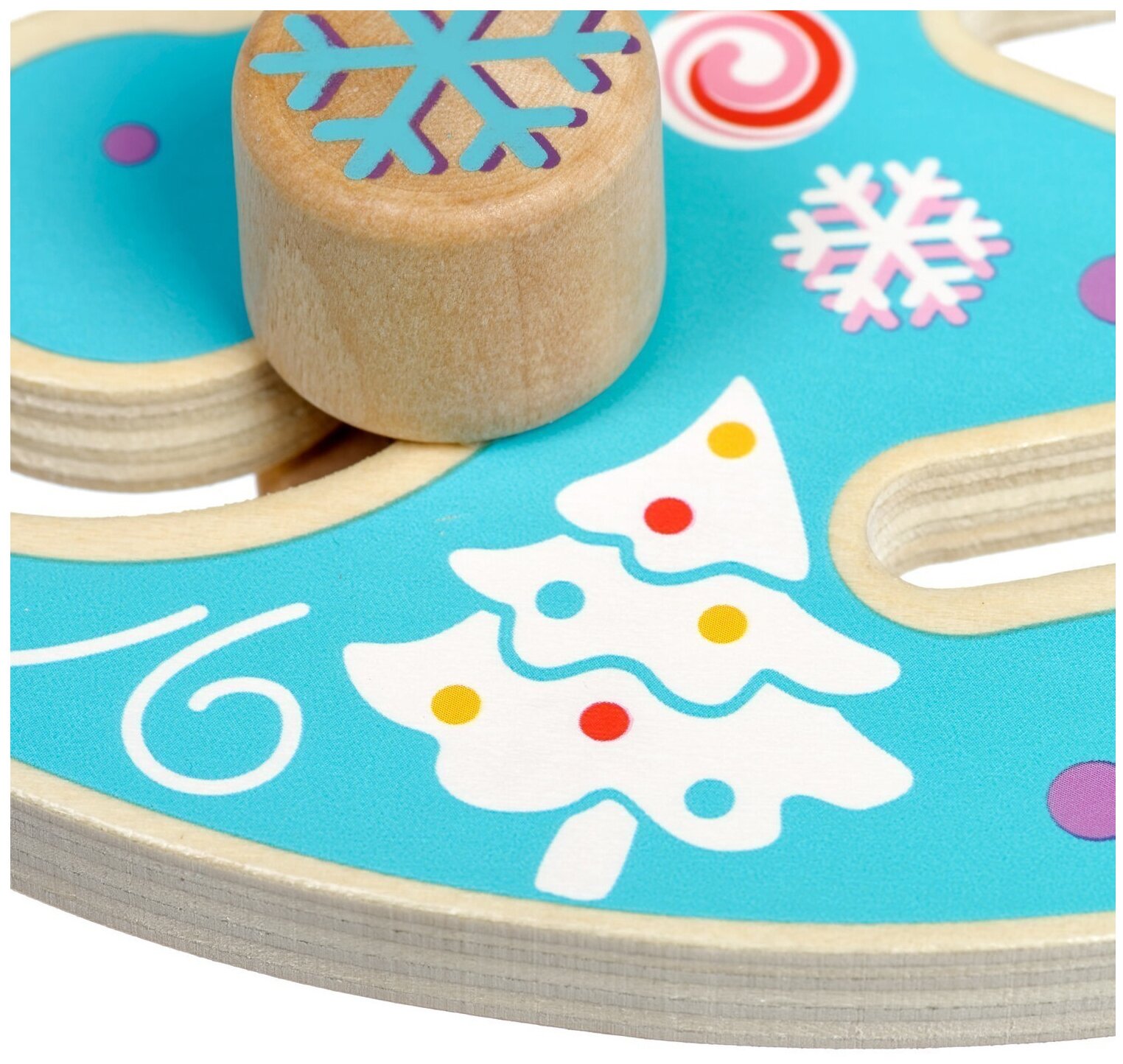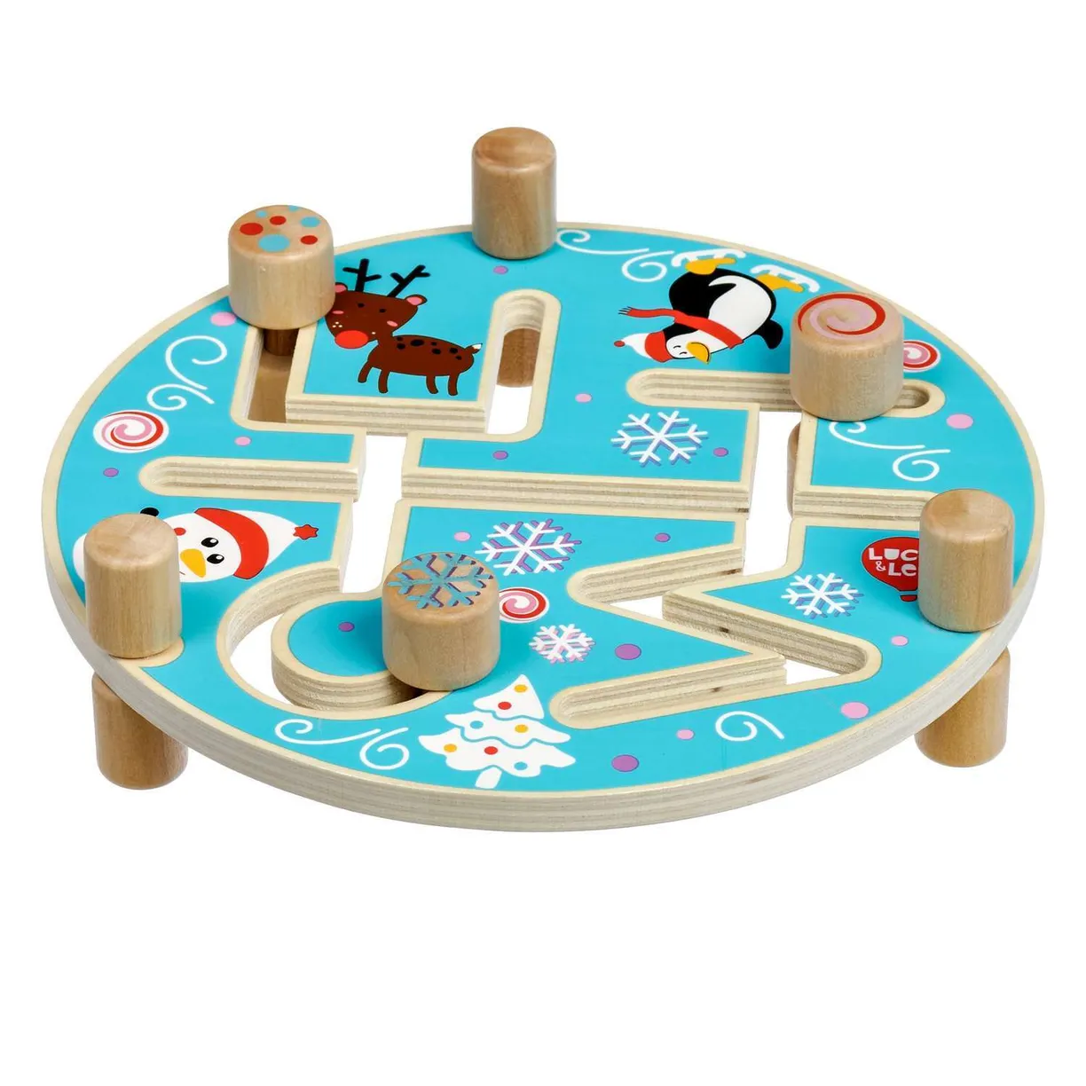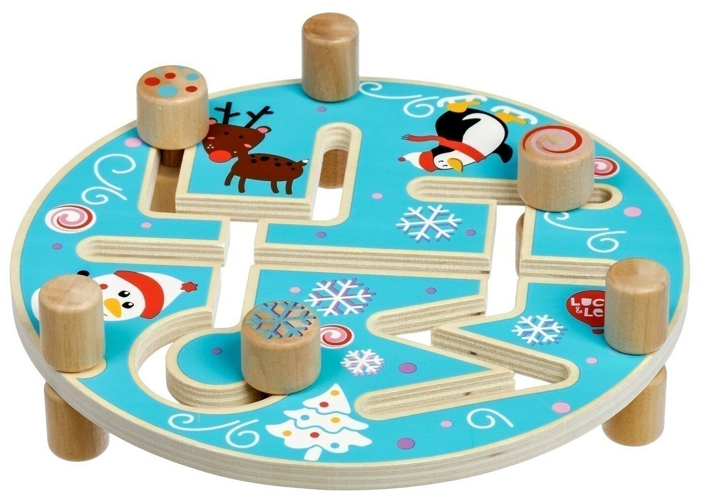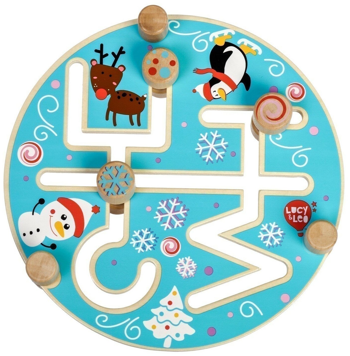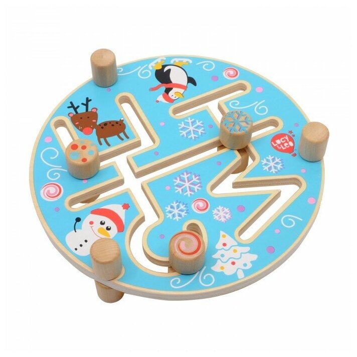 Веселые каникулы Lucy&Leo "Веселая зима" - деревянный бизиборд-лабиринт, оформленный в зимней тематике. То что нужно, чтобы познакомить малыша с особенностями холодного времени года - снеговик, снежинка, пингвин, олень, елка. В 2-4 года малыш вполне справится с задачей - провести по запутанному лабиринту деревянные фигурки. Не забывайте общаться со время игры, рассказывать или спрашивать, какие изображения встречаются по пути. Развивающая игрушка изготовлена только из качественных экологичных материалов, не выделяющих токсинов, и отшлифована вручную. Для покраски использованы безопасные водные красящие составы.