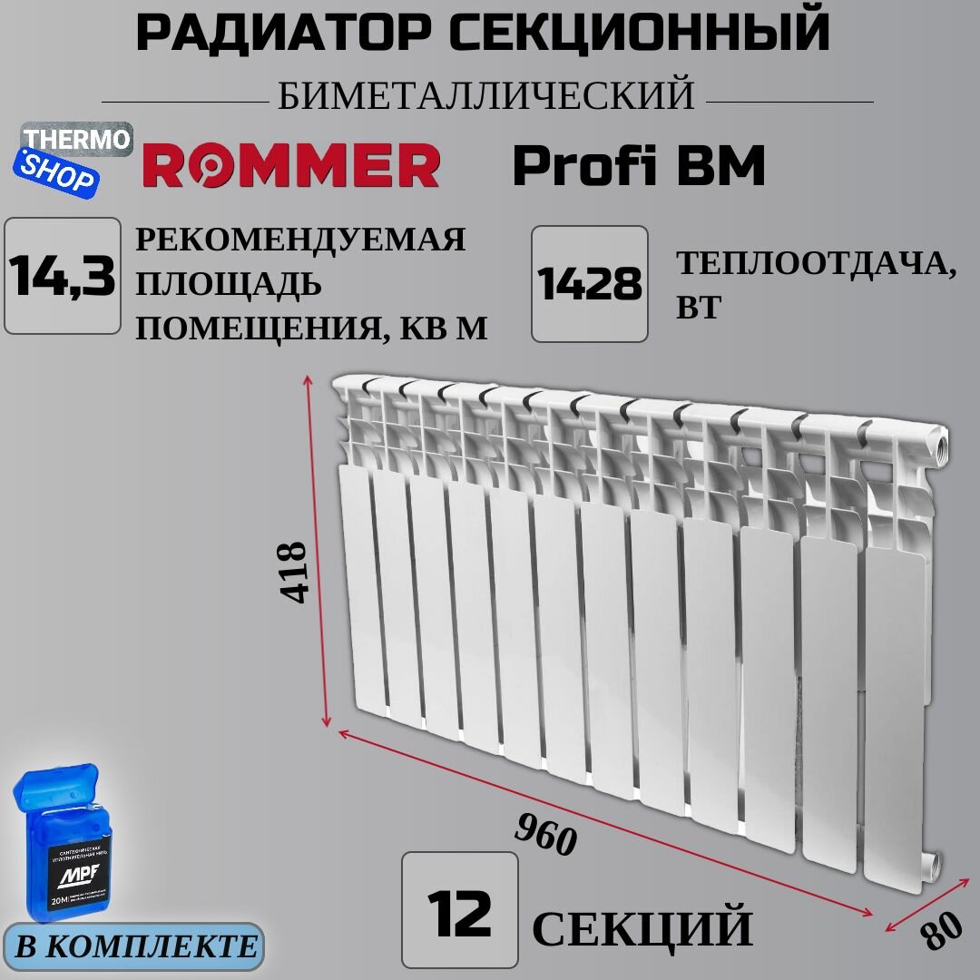 Радиатор ROMMER биметаллический 350X80 белый 8 секций Profi BM 350