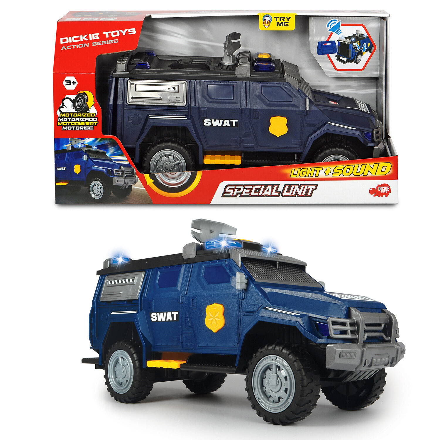 Action серия. Машина спецназа: моторизированная, свет, звук, вращающийся радар, открывающаяся задняя дверь, боковая панель. Размер 40 см.