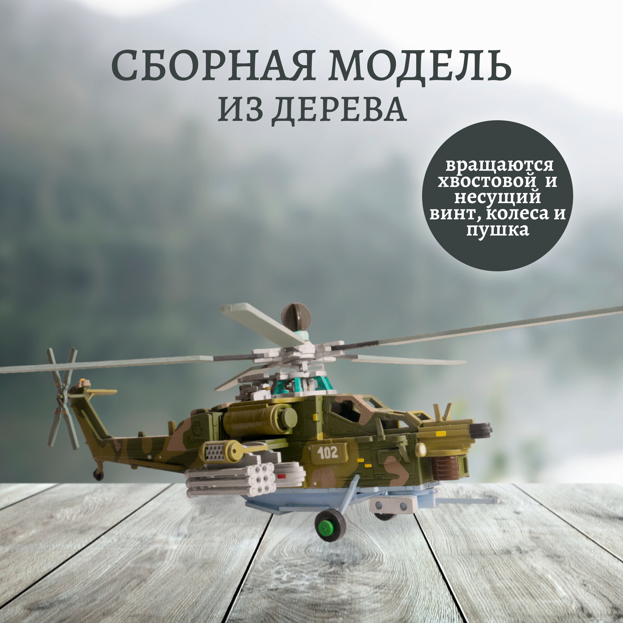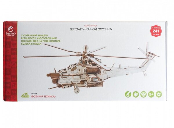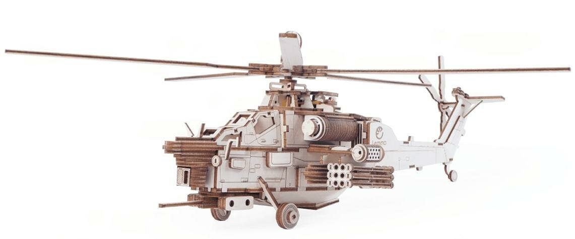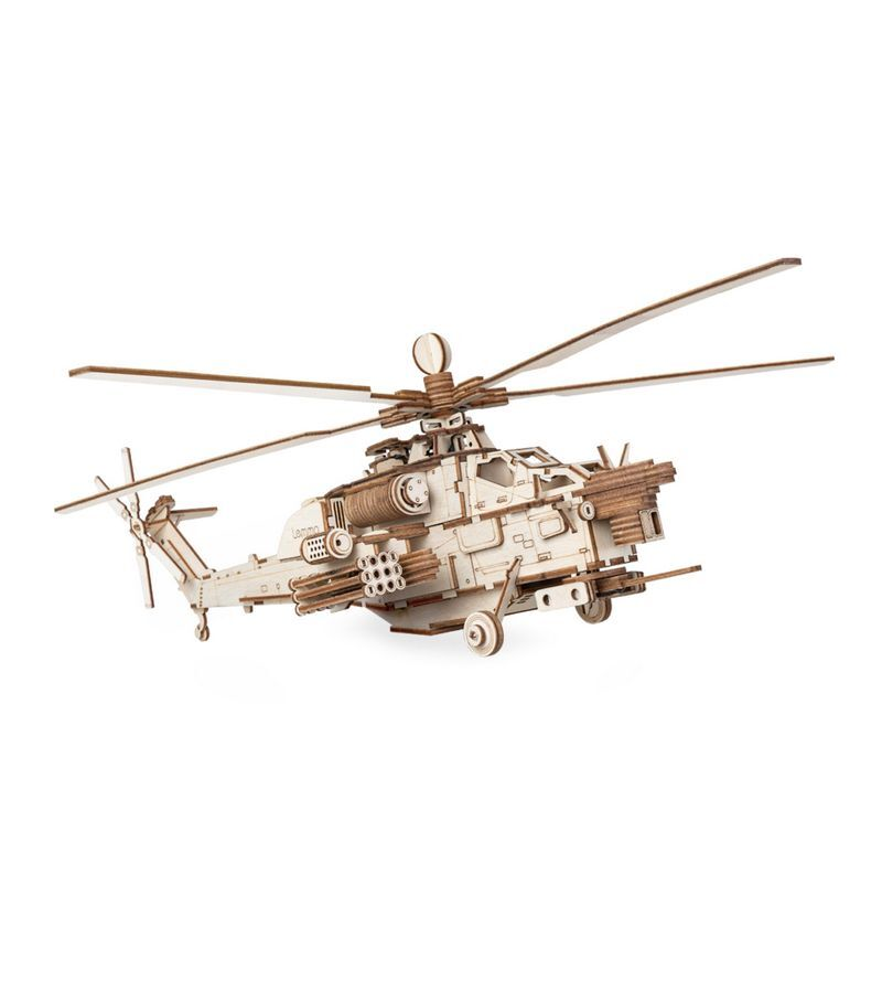 Механический 3D-конструктор военный вертолет Ночной Охотник. Он собирается с помощью клея и очень большого желания получить уникальную модель.