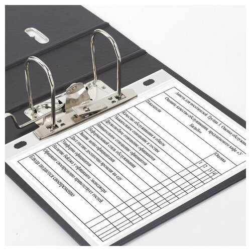 Папка формата А5 с вертикальной ориентацией изготовлена из качественного износоустойчивого картона с ПВХ покрытием с обеих сторон. Благодаря такому плотному покрытию допустима влажная уборка изделия. Ширина корешка в 70 мм позволяет разместить до 500 листов. Прорези для колец на внешней крышке позволяют оставаться папке закрытой даже при большом количестве бумаг, а надежный арочный механизм легко справляется с ежедневными нагрузками. Корешок снабжен этикеткой для маркировки содержимого, что позволяет структурировать информацию. Такая папка станет незаменимым помощником для работников с документацией. Выполнена в черном цвете.