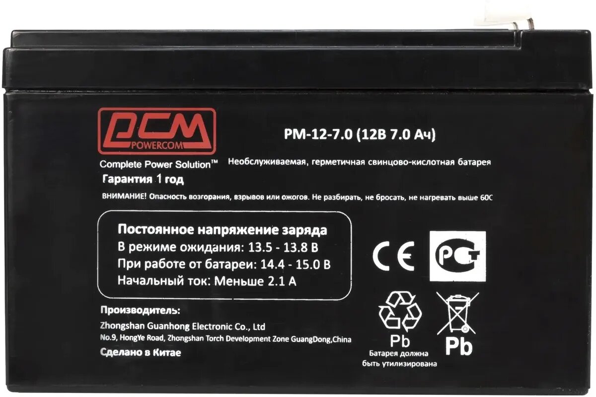 Аккумуляторная батарея для ИБП Powercom 12V 7Ah PM-12-7.0 (размер: 99x65x151мм)