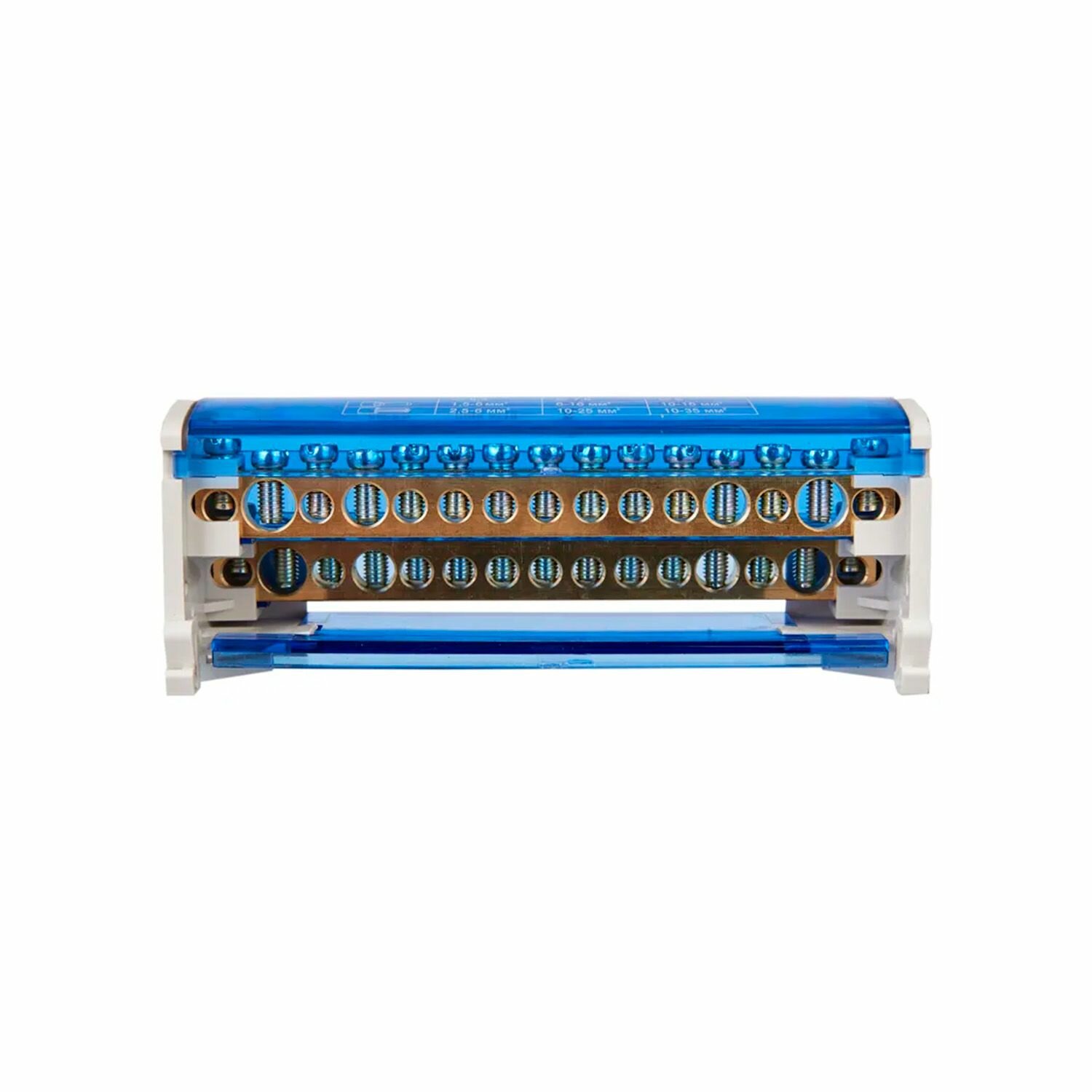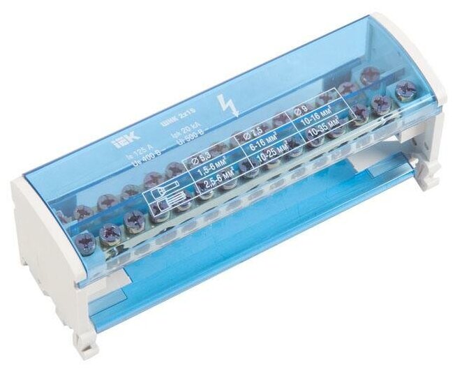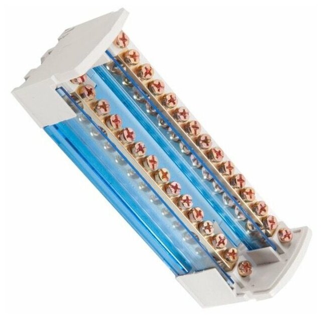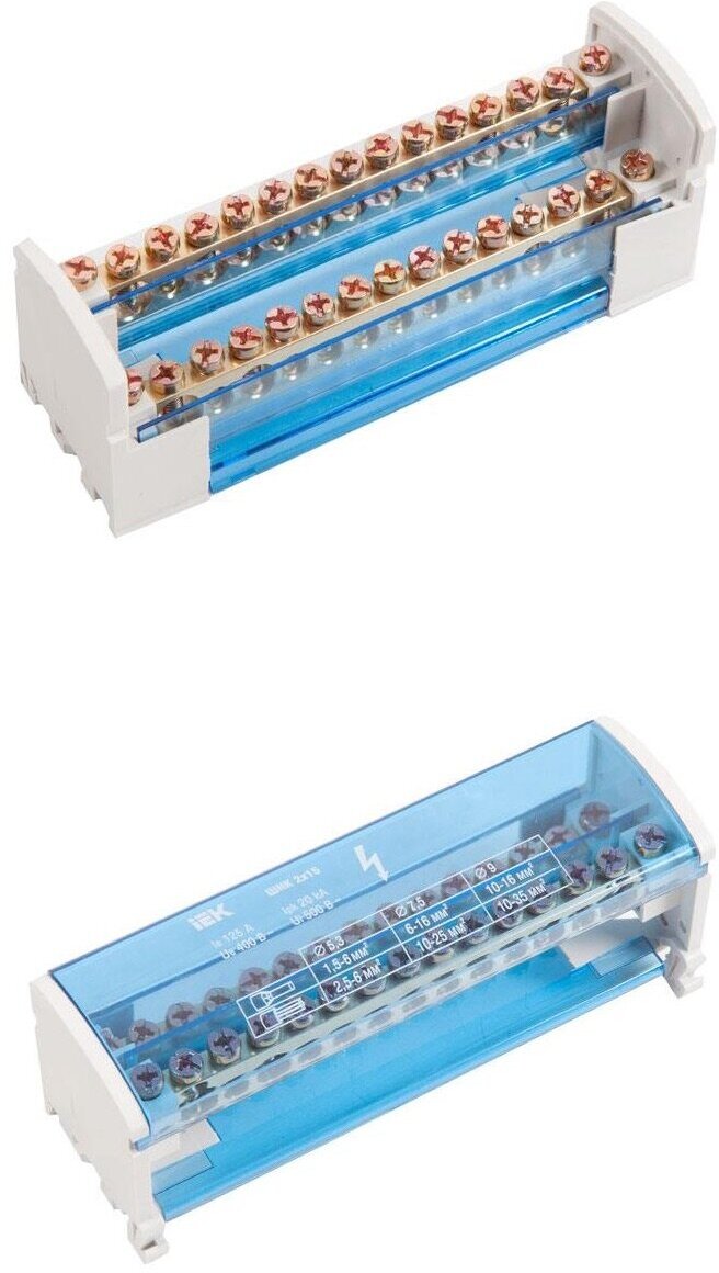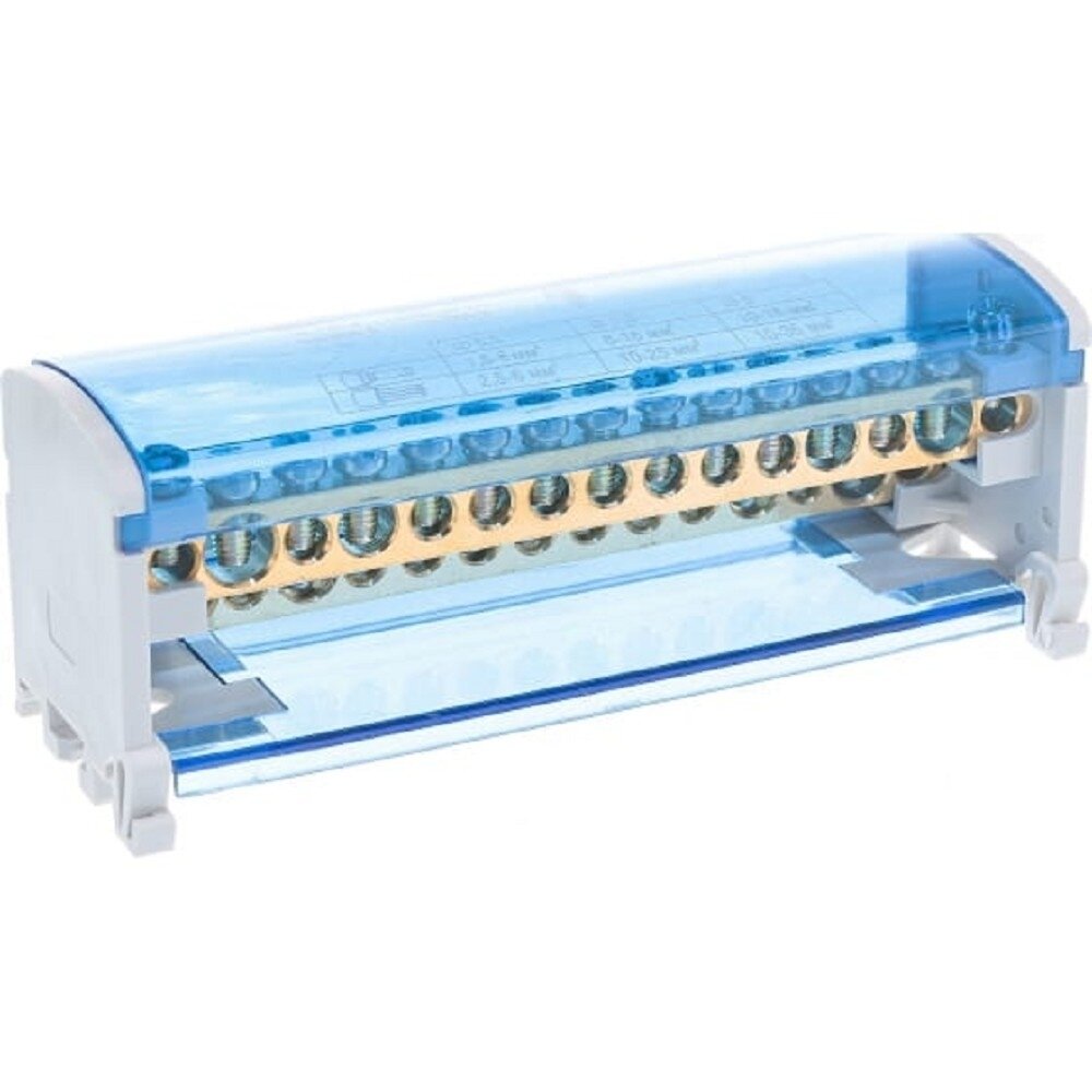 | Назначение | Применяются при комплектации щитового оборудования для подсоединения нулевого провода (нулевая рабочая шина), провода заземления и фазных проводников.,,Способы установки:,- на монтажную DIN-рейку 35 мм;,- на панель щита двумя винтами. |