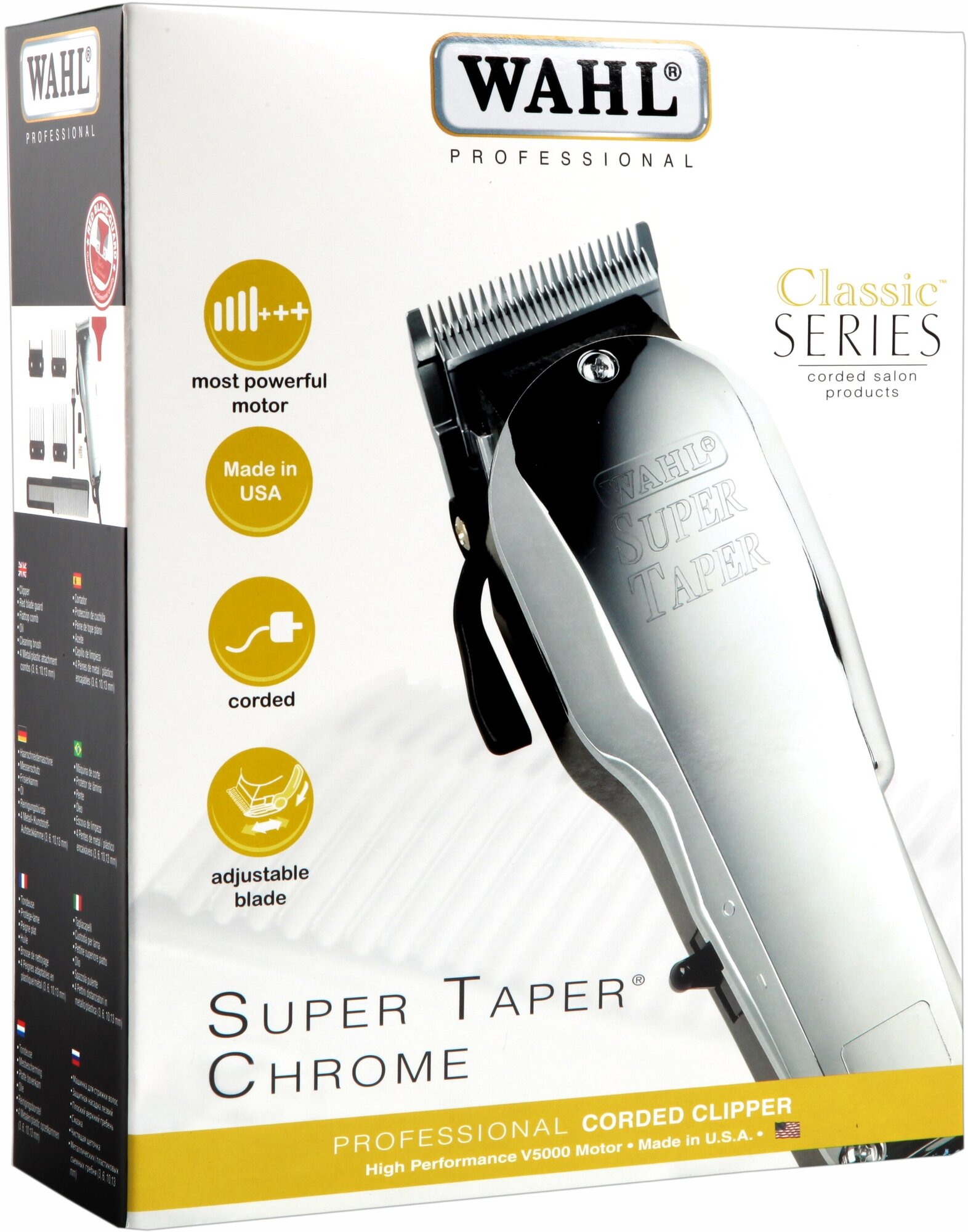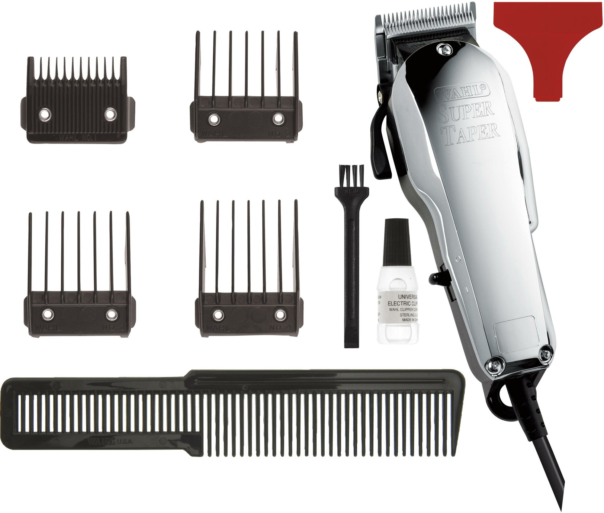 Профессиональная сетевая машинка для стрижки волос WAHL 4005-0472 Chrome Super Taper: корпус с хромовым покрытием и зеркальным отблеском. Мощная, безотказная сетевая машинка для стрижки, для неограниченного использования. Очень популярная модель среди барберов. Выделяется своим неповторимым дизайном и конечно же имеет ряд преимуществ, а именно, профессиональный износостойкий и долговечный анкерный вибродвигатель V5000, предназначен для длительных работ, с системой шумоподавления. Так же машинка оснащена хромированными прецизионно заточенными ножами, изготовленные в США с регулировкой высоты среза от 1 до 3.5 мм. и рычагом плавной регулировки высоты среза.