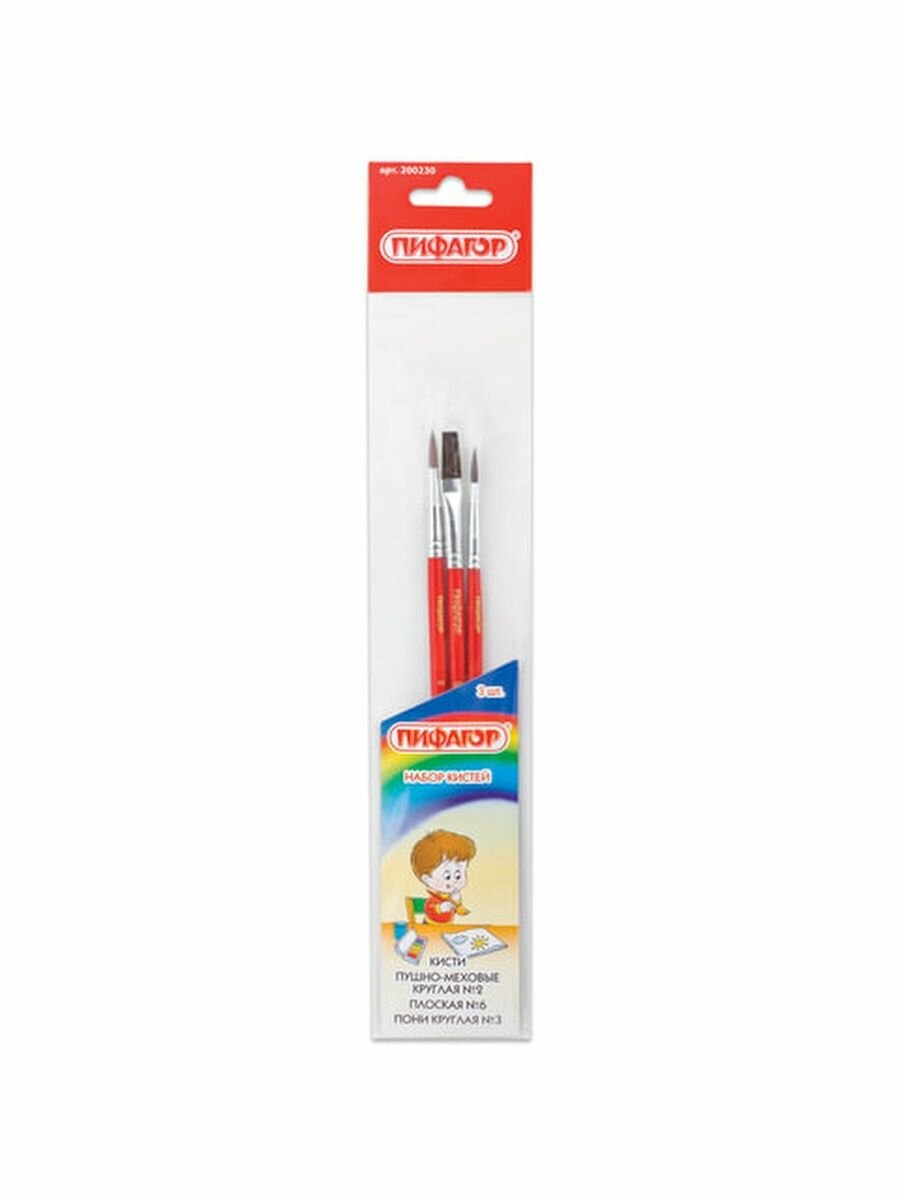 Сервис сравнения цен СкидкаГИД предлагает сравнить цены на товар «Набор кистей Пифагор пушно-меховые пони с длинной ручкой №6 3 шт. пакет 200230»