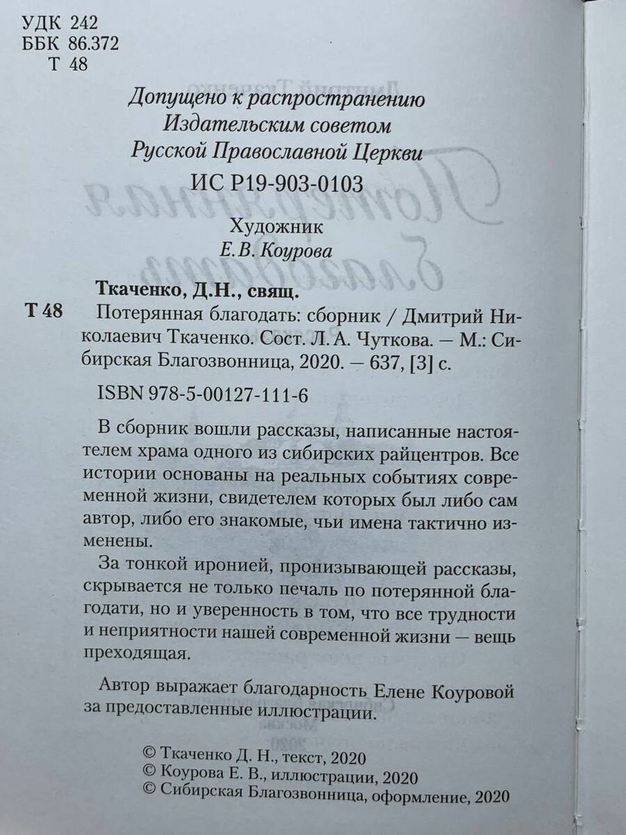 Книга: Потерянная благодать (Священник Ткаченко Дмитрий); Сибирская Благозвонница, Сибирская Благозвонница, 2019