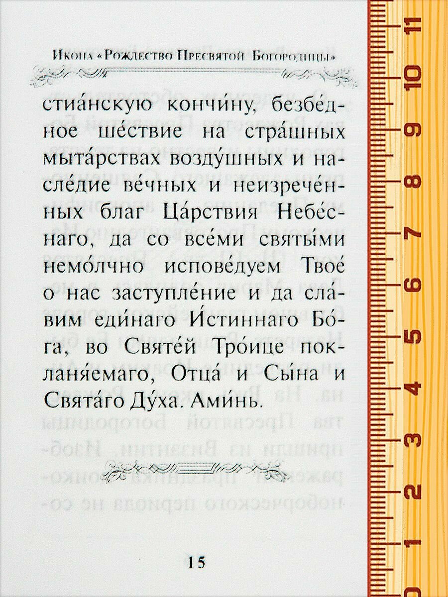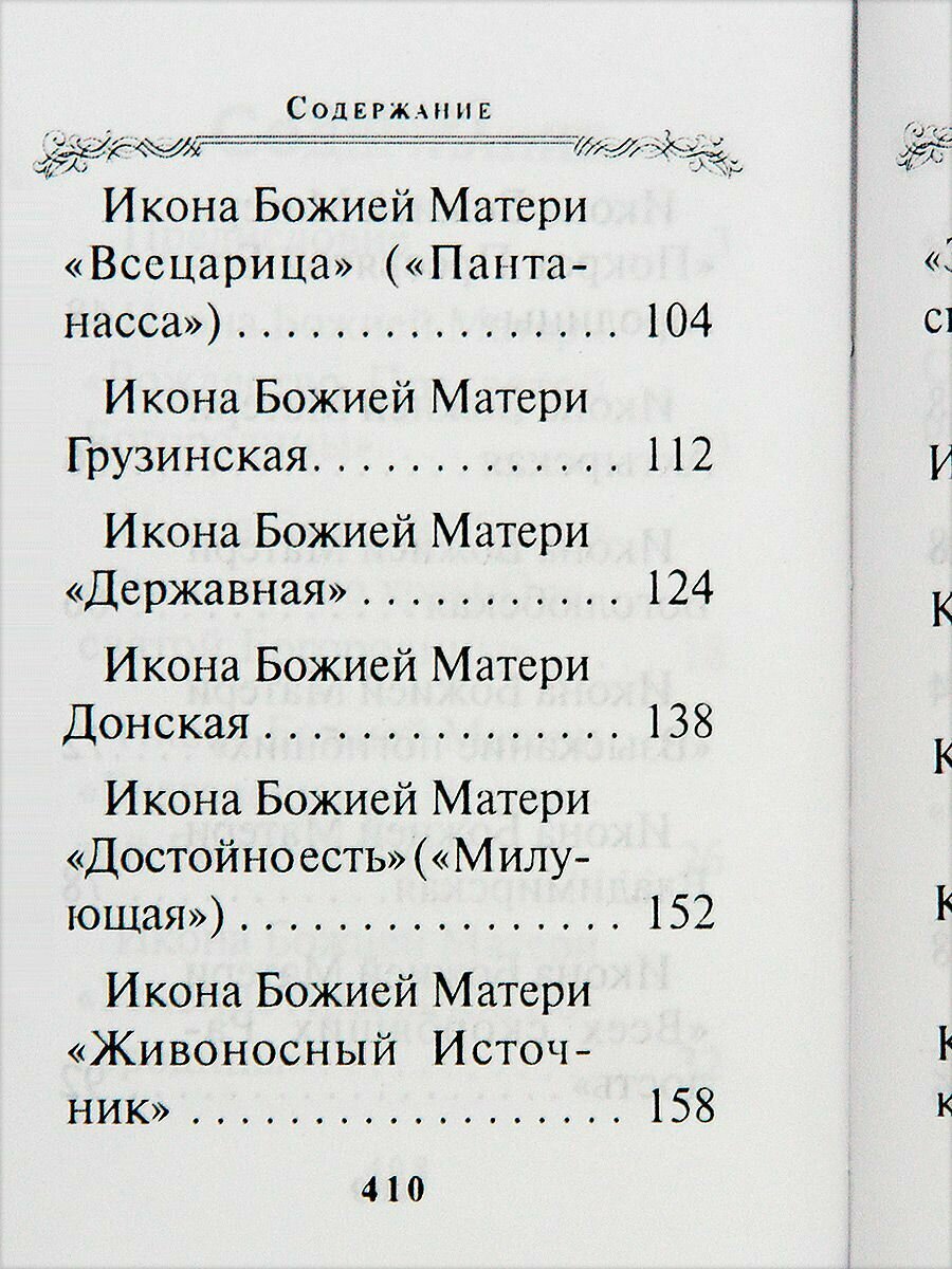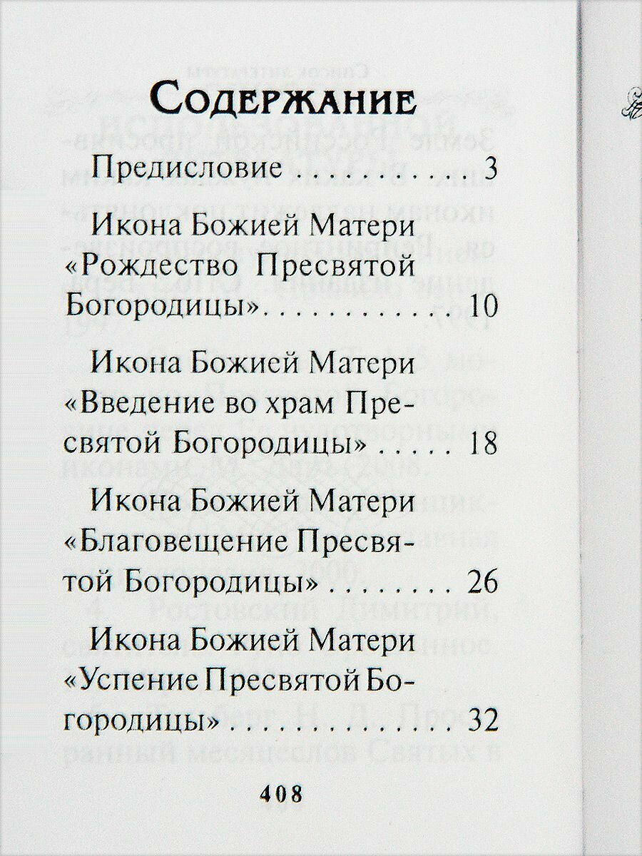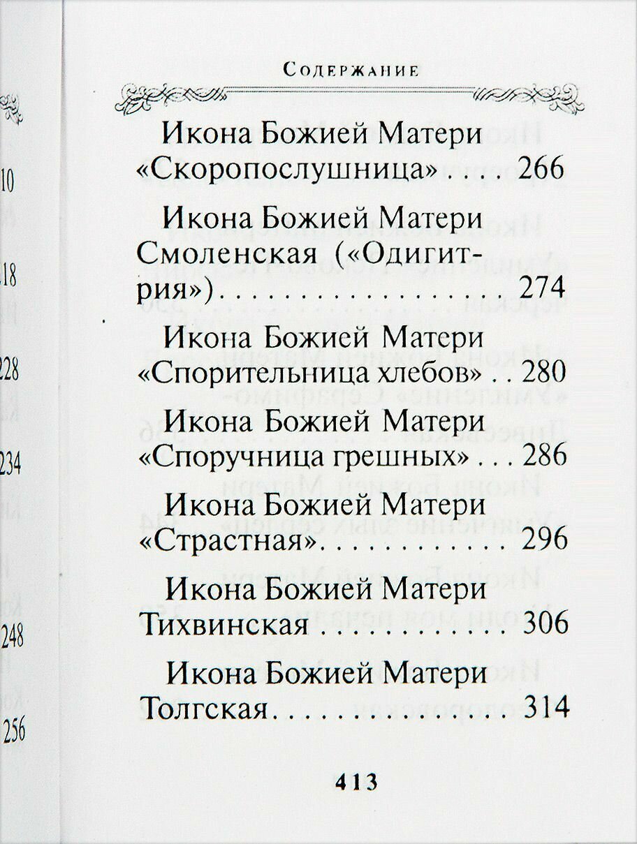 Содержит тропари, кондаки, величания и молитвы перед 44-мя чудотворными иконами Богородицы. Издана в карманном формате.