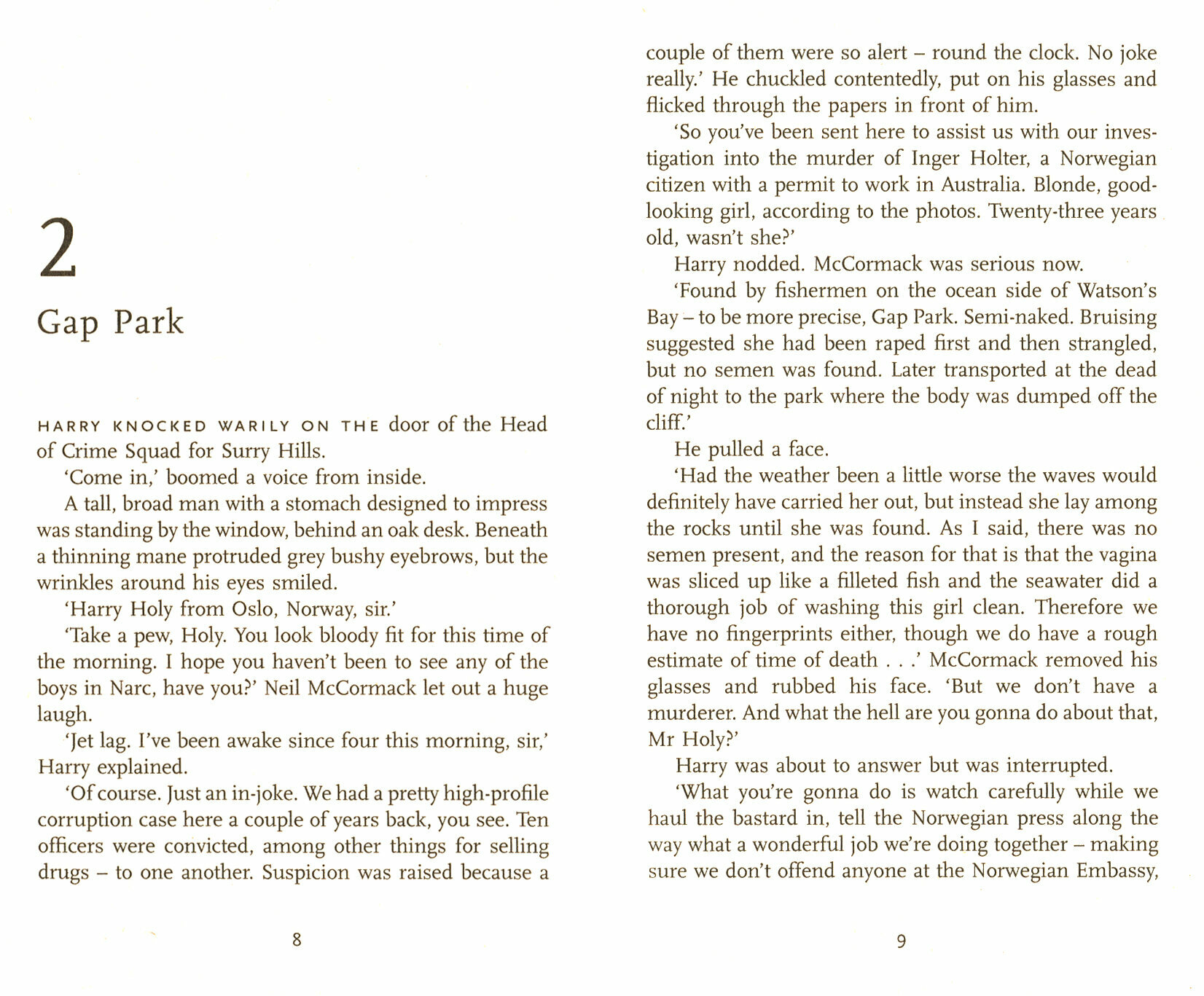 Detective Harry Hole is meant to keep out of trouble. A young Norwegian girl taking a gap year in Sydney has been murdered, and Harry has been sent to Australia to assist in any way he can.
