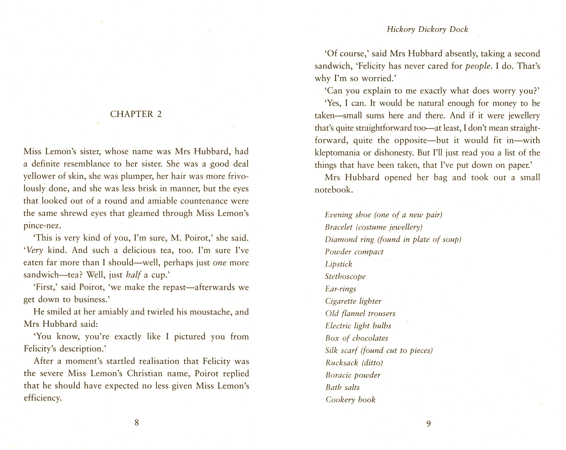 The list made absolutely no sense at all. But, reasoned Poirot, if this was merely a petty thief at work, why was everyone at the hostel so frightened?