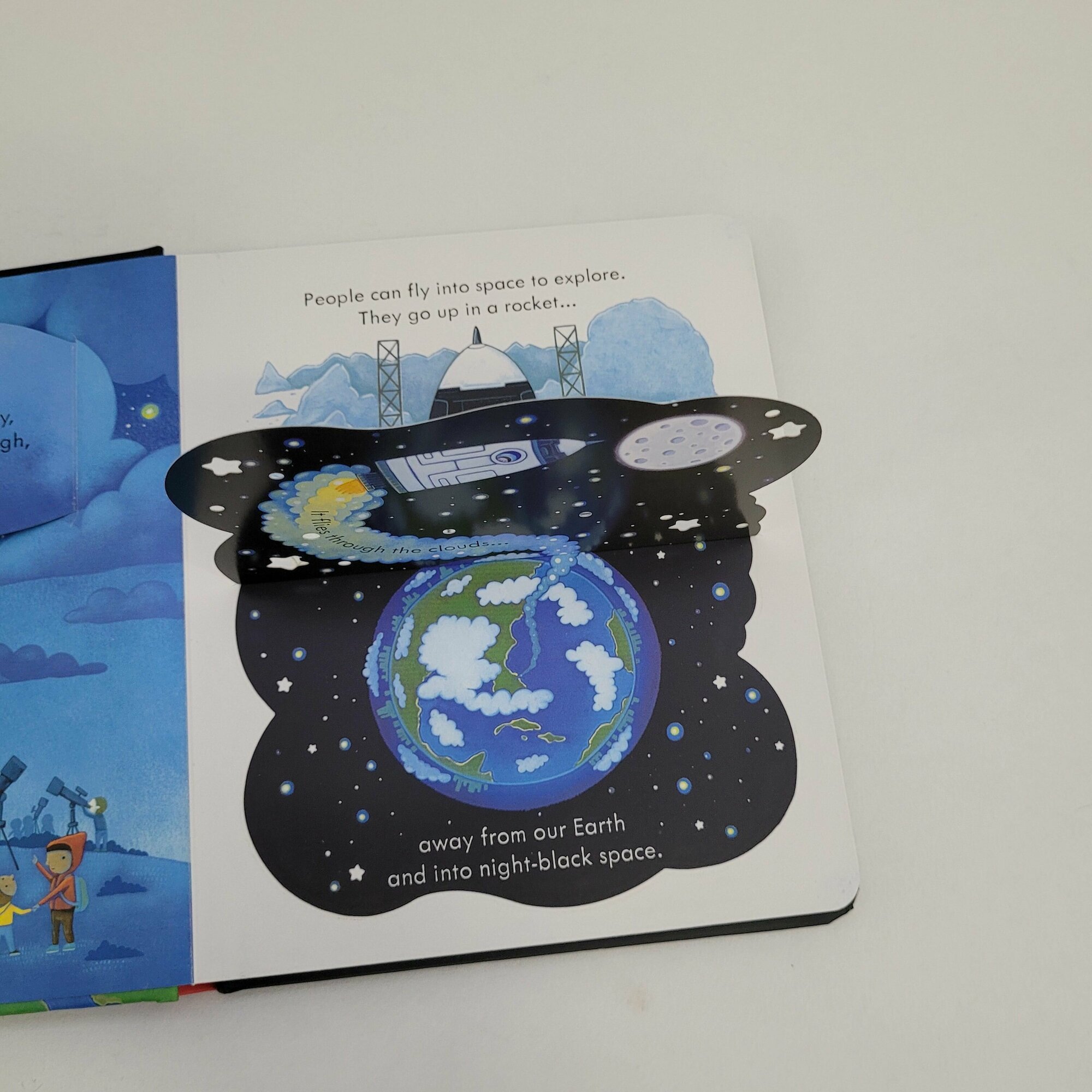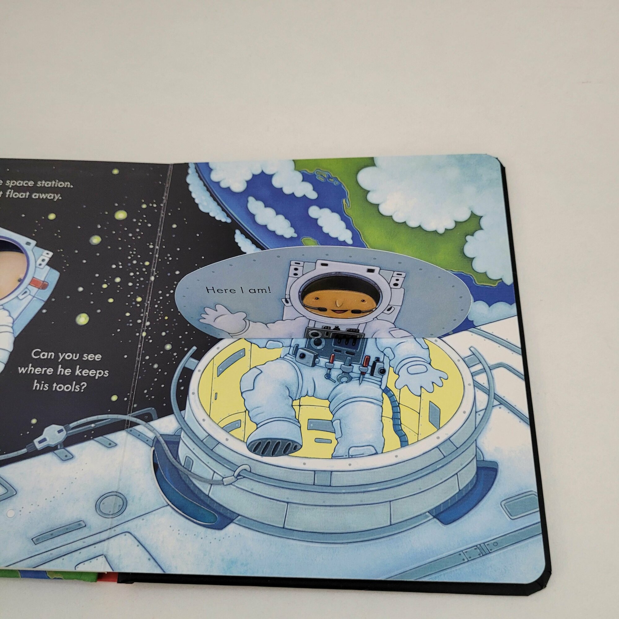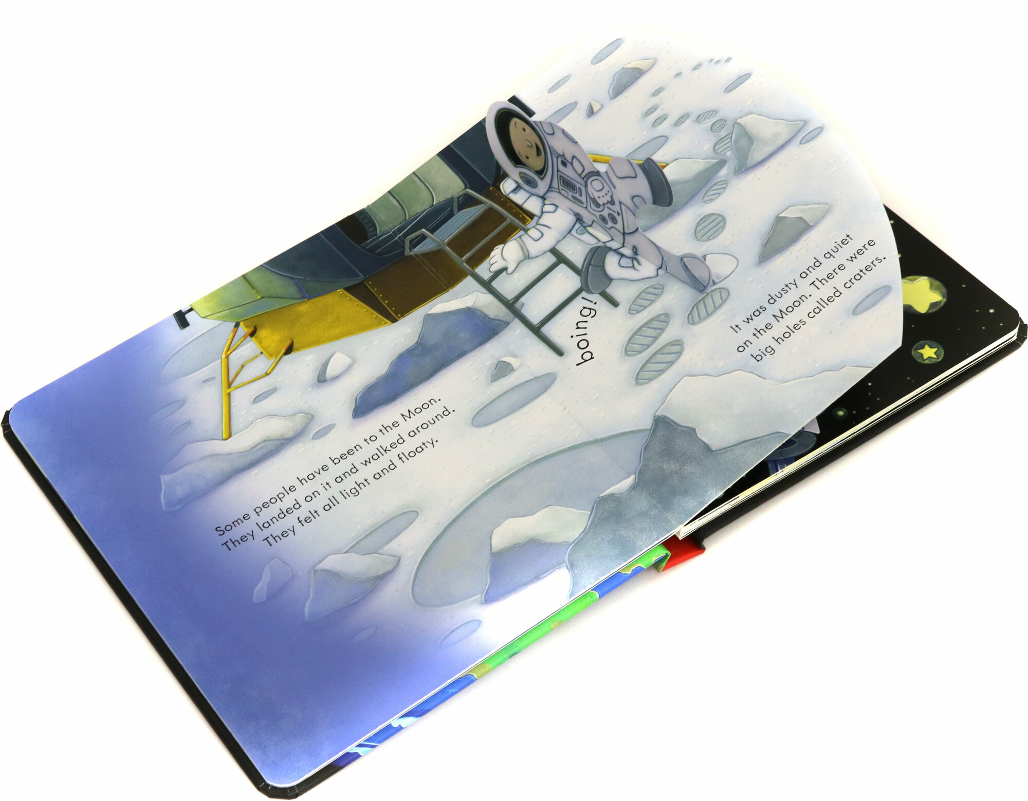 Очень красивая книга про космос ,ракеты,космонавтов! На каждом развороте несколько открывающихся створок ! Описание космоса очень небанальное,много новых слов для изучения английского! Вся серия просто чудесная! Плотная картонная обложка и страницы огромный плюс!!