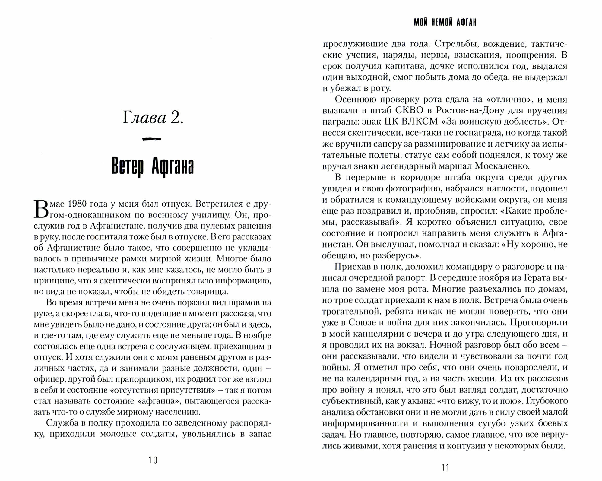 "Мой немой Афган" - роман-приключение, исповедь русского офицера о судьбах родины, матерях, женах, чиновниках, бандитах, о многонациональной планете, локальных и глобальных военных и личных конфликтах. Книга не только войне, это о себе, о каждом. Чтобы, прочитав про немой Афган, решиться на искренность, для начала - с самим собой.