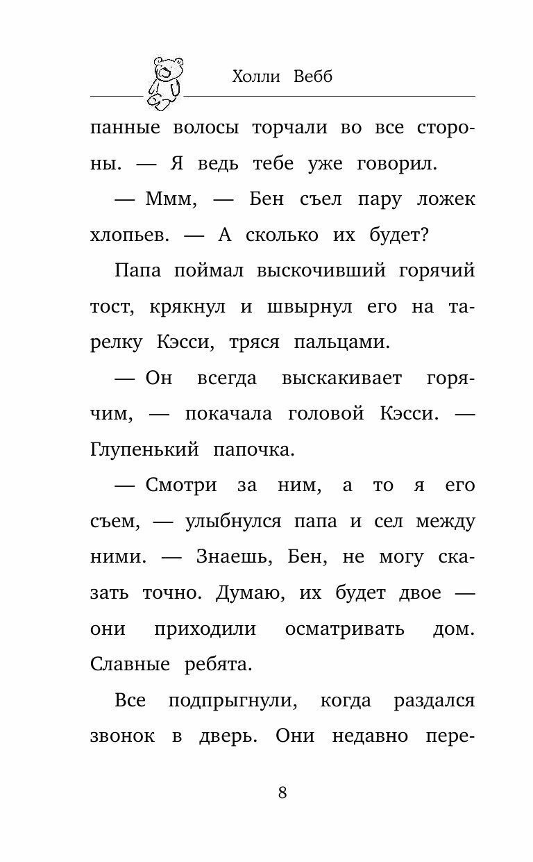 Кэсси, младшая сестра Бена - фантазёрка. То она придумывает, будто строители, которые занимаются пристройкой к их дому - отставные пираты, то что к Бену и Кэсси в сад наведывается настоящий медведь. Бен не придавал этому значения, сестрёнка ещё маленькая.