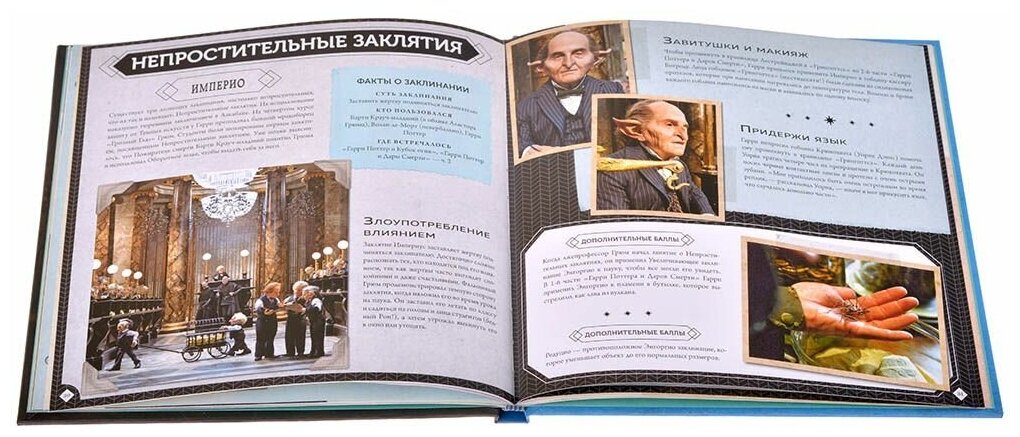 Самый настоящий учебник магии, из которого вы узнаете все о чарах и заклинаниях вселенной Гарри Поттера! От Экспеллиармуса до Экспекто Патронум - все заклинания вселенной Гарри Поттера (даже Непростительные!) ждут вас в этом уникальном закадровом путеводителе по волшебному миру Дж.К. Роулинг. Описание каждого заклинания сопровождается невероятными иллюстрациями, фотографиями со съемок, а также воспоминаниями актеров о том, как проходили съемки. Хватайте свою волшебную палочку и погружайтесь в магическую вселенную! Почему вы должны купить книгу "Гарри Поттер. Учебник магии. Путеводитель по чарам и заклинаниям" прямо сейчас: Вы освоите весь курс Защиты от темных искусств за короткое время! Вы узнаете о том, как создавалась магия на экране! Вы получите множество дополнительных материалов - карточки с патронусами разных героев, буклеты и вкладки, а также стикеры с эксклюзивными артами! Вы можете купить книгу "Гарри Поттер. Учебник магии.