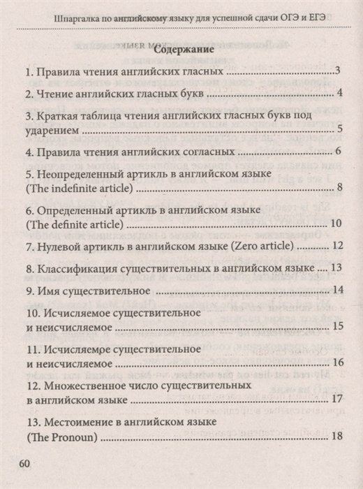 Отличный формат. В кратком виде изложены все основные теоретические сведения по грамматике английского языка, которые могут понадобиться для школьника на экзамене. Только необходимое, ничего лишнего. Ко всем правилам приводятся примеры на английском языке с переводом на русский. Наглядные таблицы. Есть правила чтения, списки основных слов-исключений из правил.