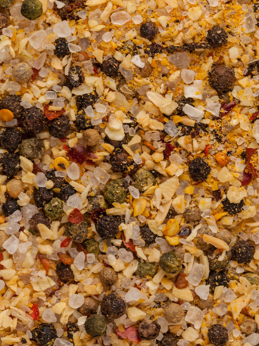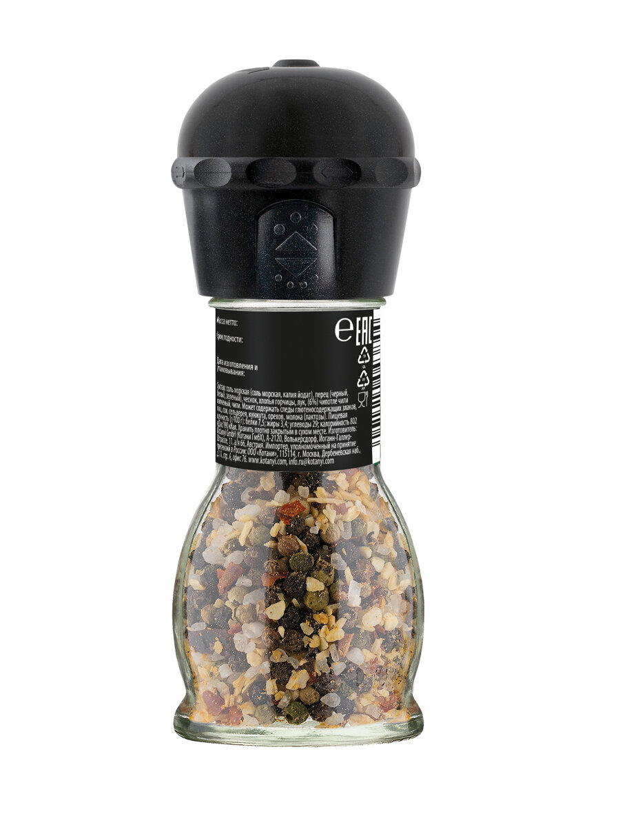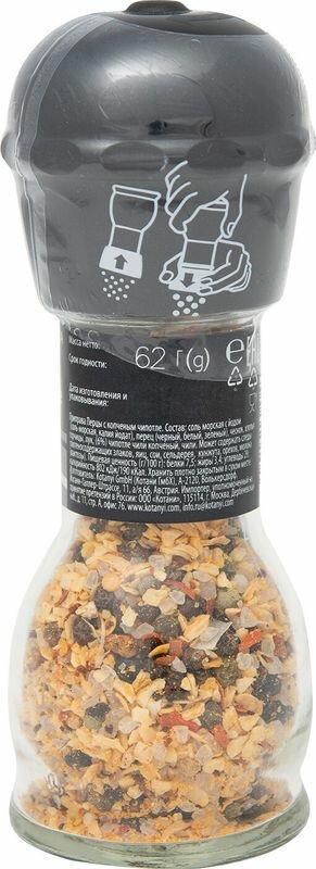 Описание товара:Черный, белый и зеленый перцы в сочетании с пряным ароматом копченого чили чипотле придадут пикантную нотку вашим блюдам.Состав товара:Соль морская (соль морская, калия йодат), перец (черный, белый, зеленый), чеснок, хлопья горчицы, лук, (6%), чипотле чили копченый, чили.