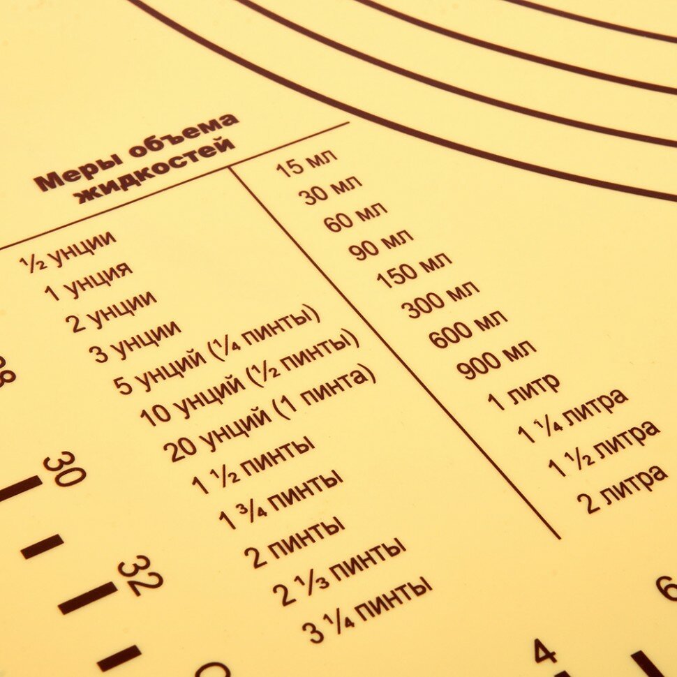 Коврик имеет сантиметровую шкалу по периметру и диаметру, что очень удобно при работе с тестом. А также меры и веса основных продуктов и меры объема жидкостей! Такой коврик поможет приготовить тесто нужной консистенции и придать ему необходимый размер без помощи дополнительных аксессуаров! Материал устойчив к фруктовым кислотам, к воздействию низких и высоких температур. Можно мыть и сушить в посудомоечной машине.